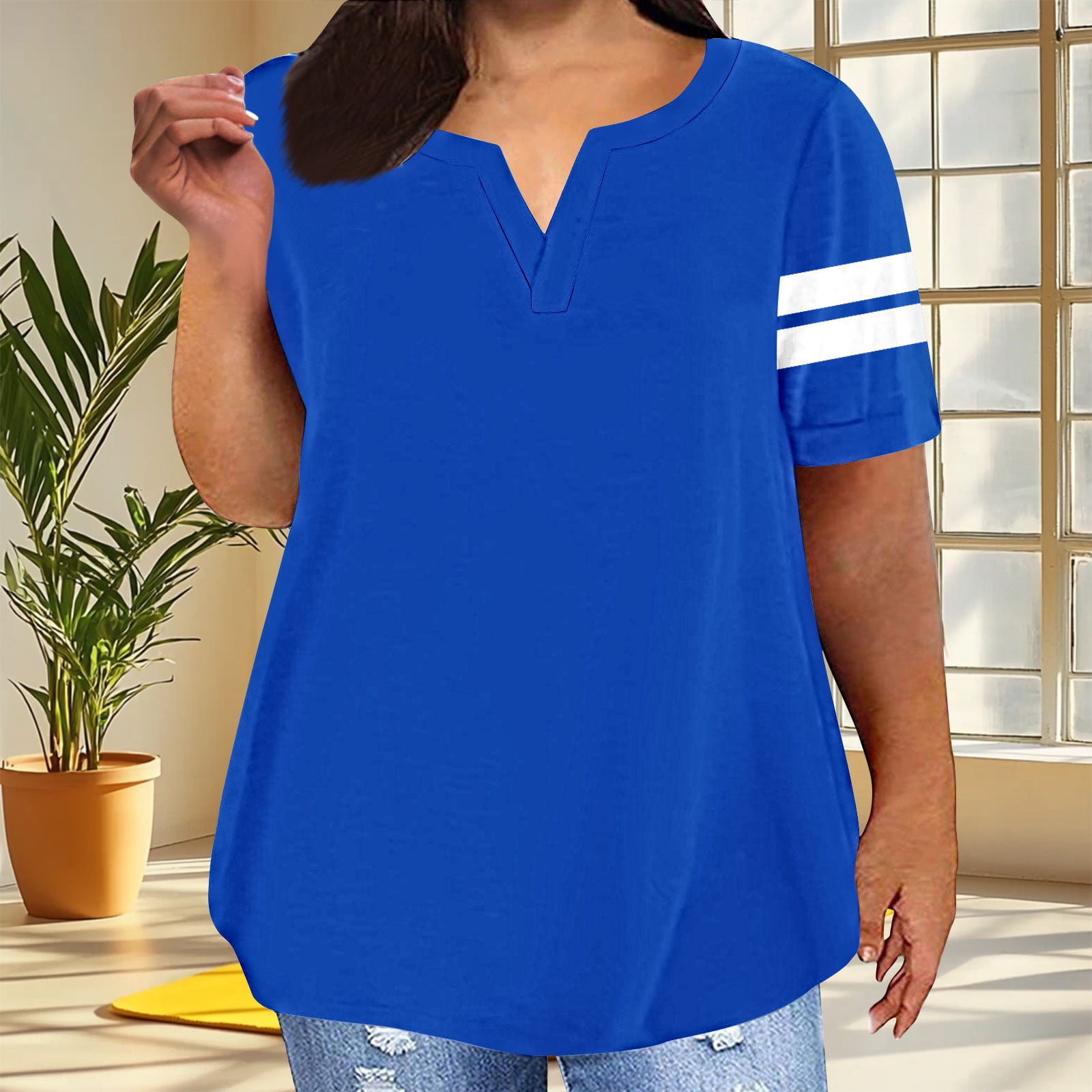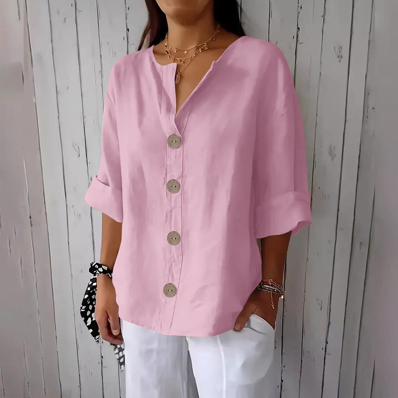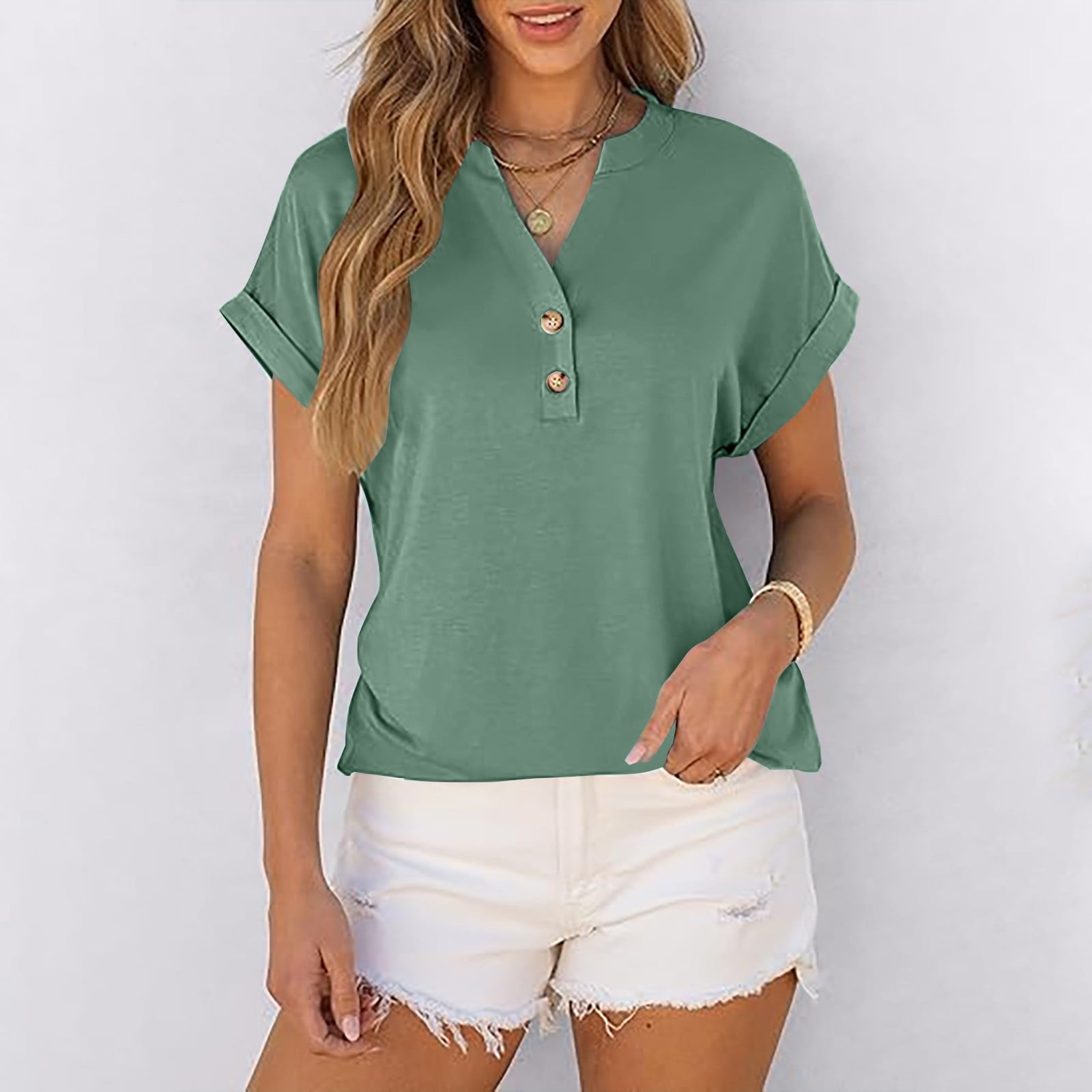 Amzcrzy Womens T Shirts 2026 Solid Color Cuffed Sleeve Shirts V Neck ...