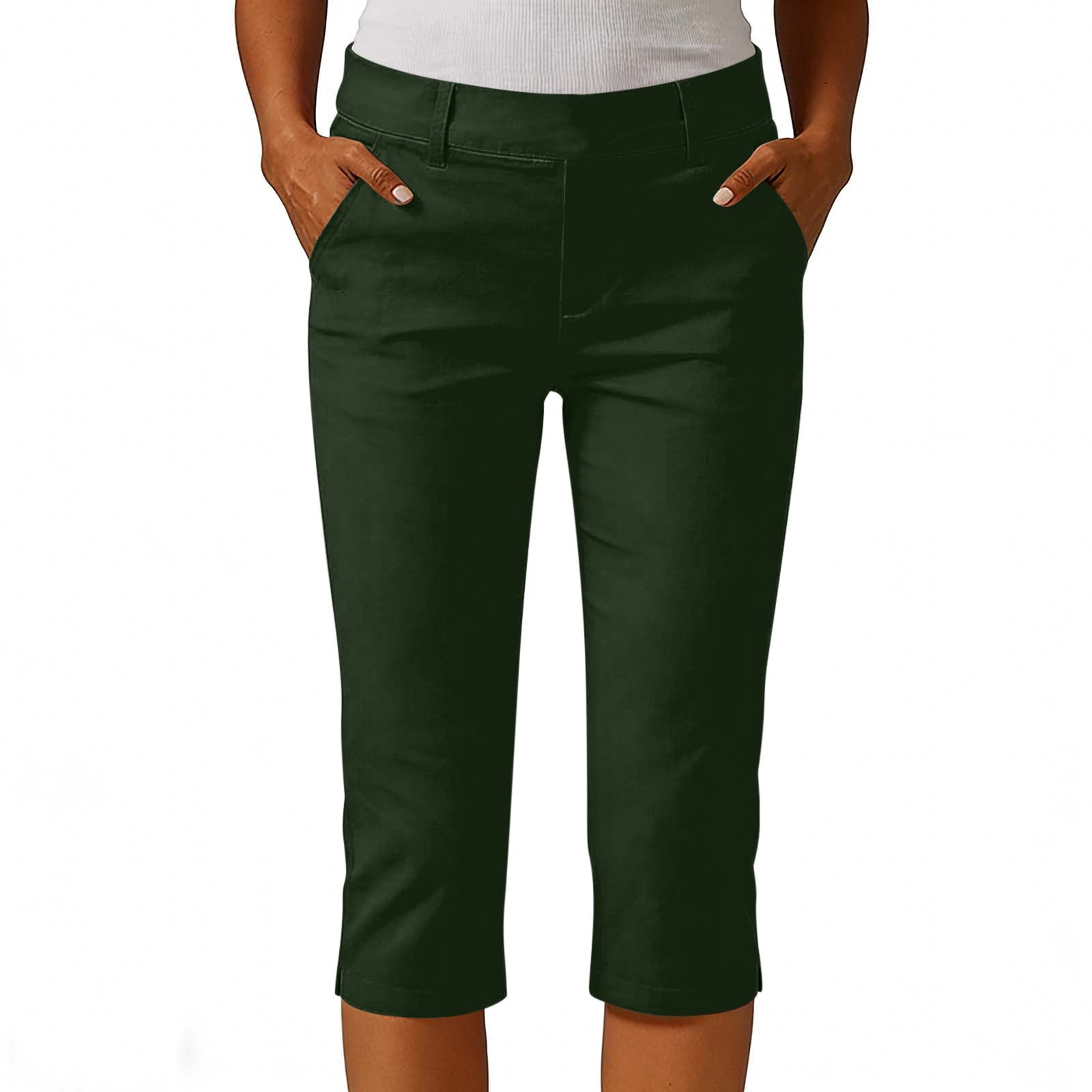 Yuanlong Womens Yoga Pants Solid Color Mid Waist Large Folding Pants ...