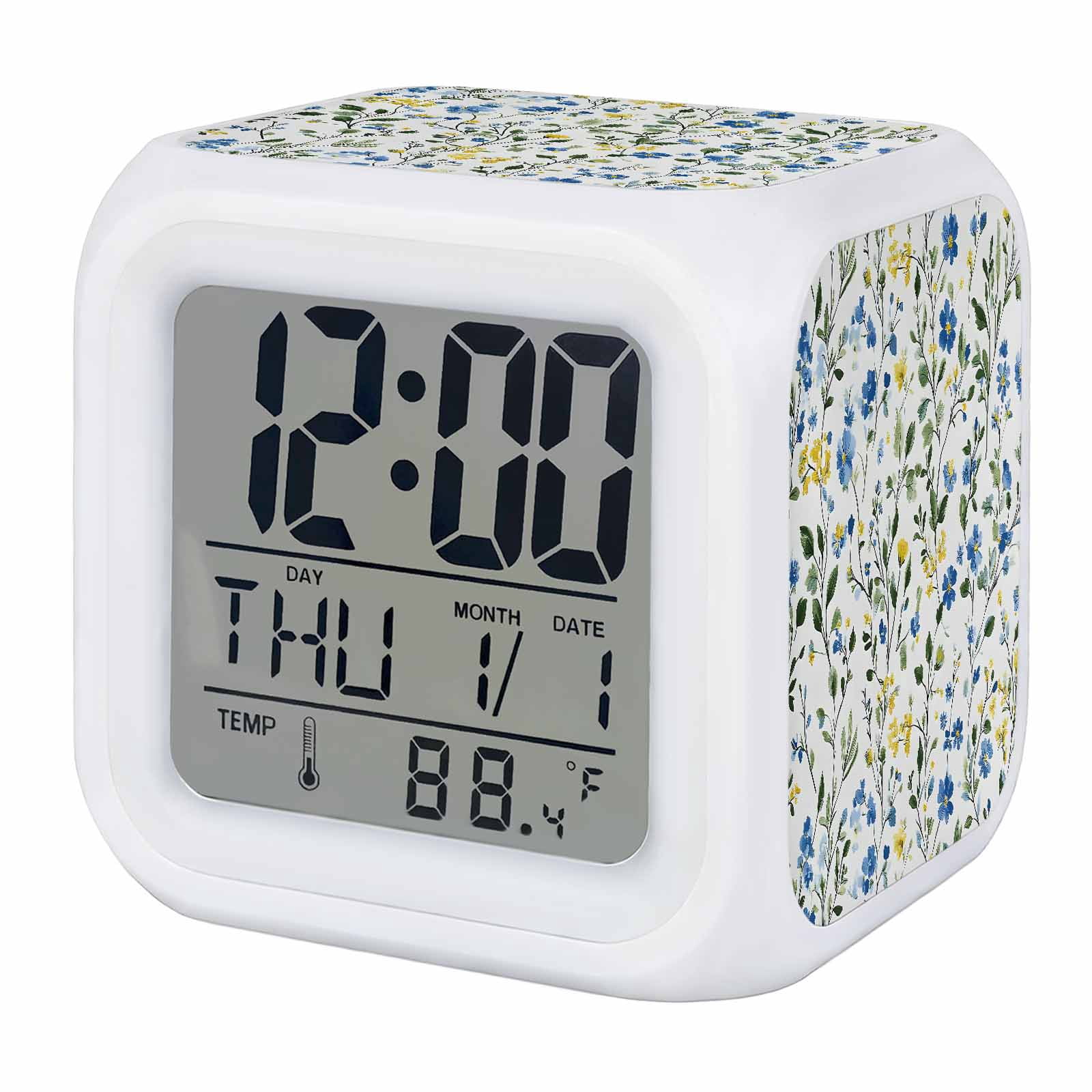 Blue Yellow Floral Spring Digital Alarm Clock for Bedrooms,Smart LED ...