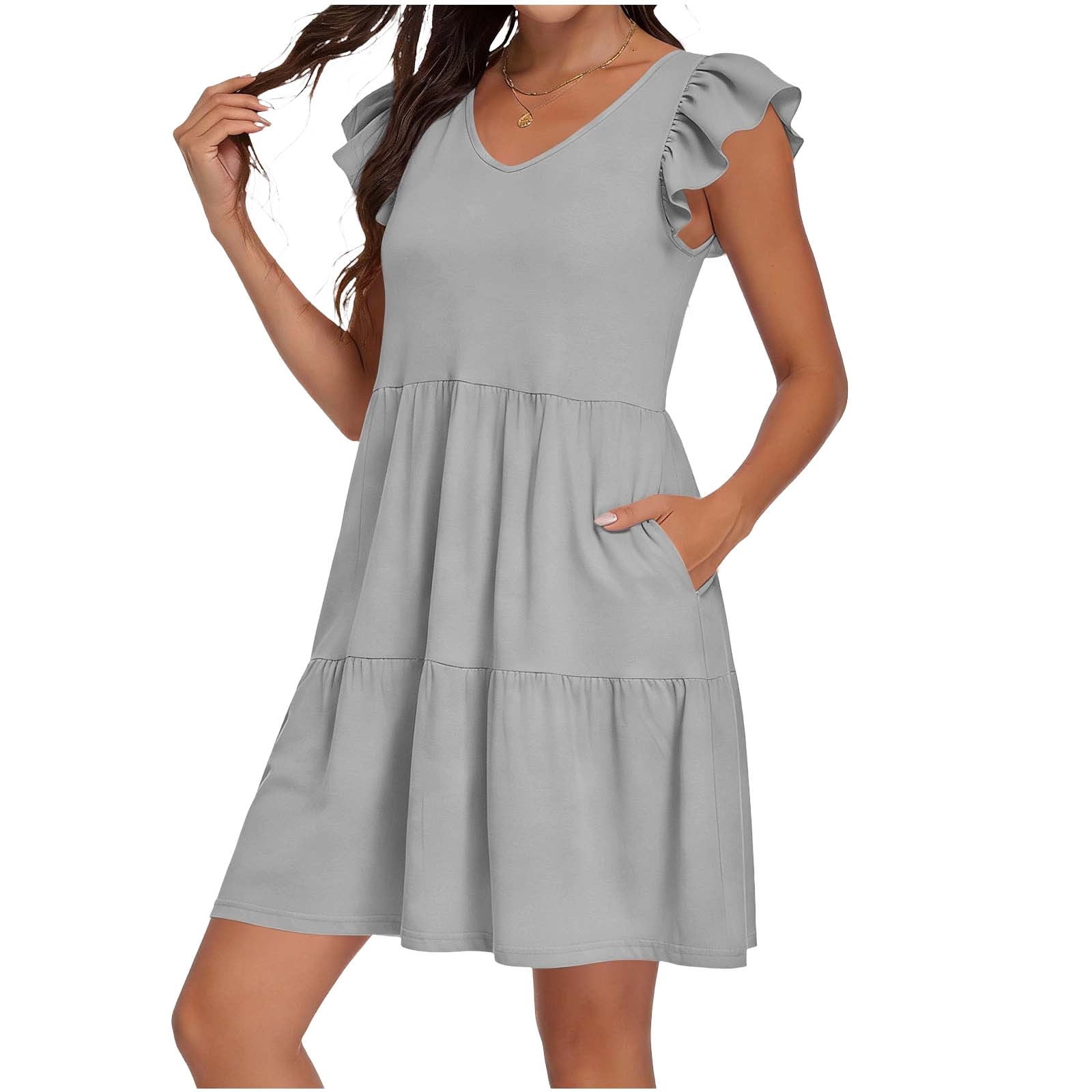 EGNMCR Holiday Dresses for Women Womens Spring And Summer V-Neck Solid ...