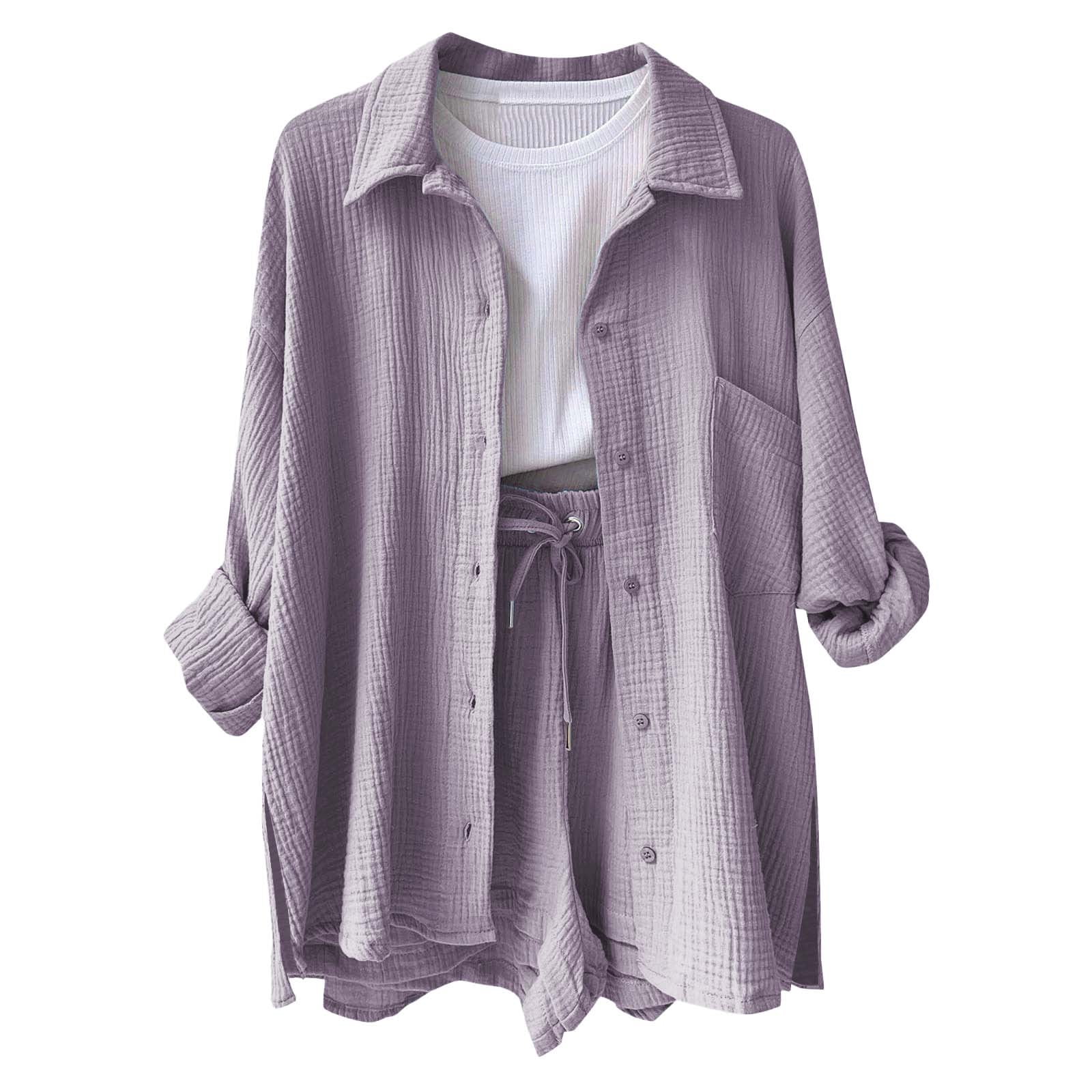 Curuila Womens Tops Long Sleeve Solid Color Lapel With Side Slits And ...