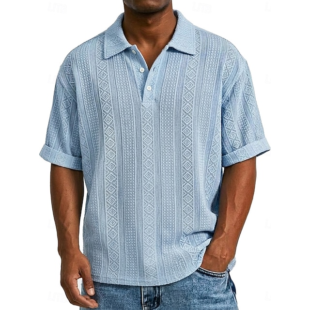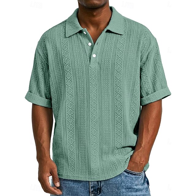 Men's Henley Shirt Tee Short Sleeve Solid Color Jacquard Fashion ...