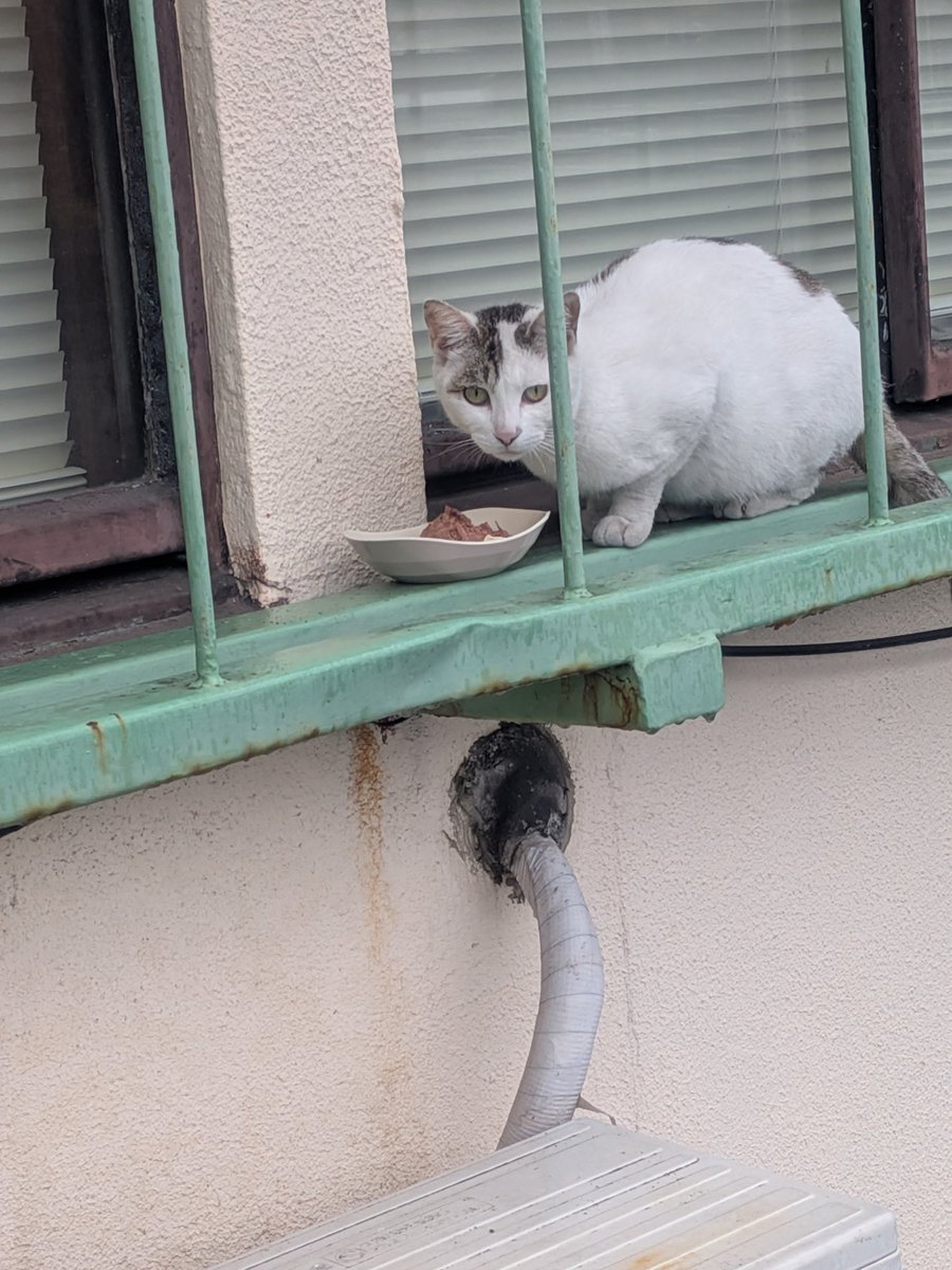 おはようございます🐦️市内K町 ☔雨降りの給仕はなかなか難しい…ウチには猫たちが雨を凌げるほどの屋根がなく🏡今日はお隣の屋根の下を借りました ...