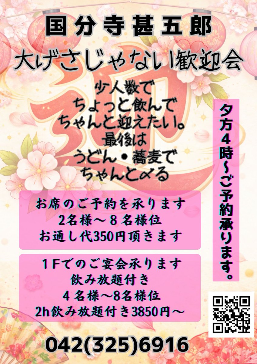 小さな歓迎会 飲んで終わりじゃなく 食べて〆る それだけで ちゃんとした歓迎になる 2~8名さま位がちょうどいい 🌸1F席のご予約 ・お席のご ...