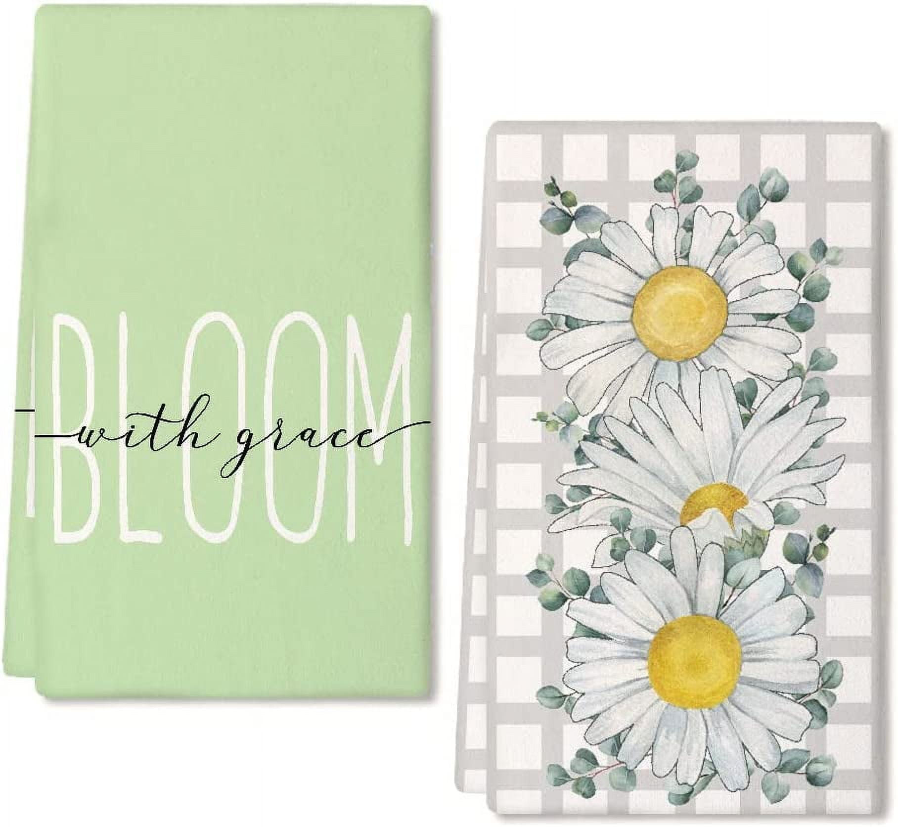 Amazon.com: Spring Kitchen Towels Decorative Set of 2 Absorbent Daisy ...