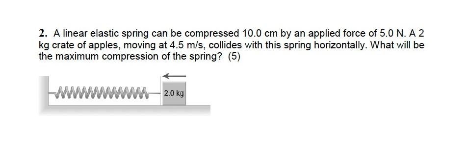 Solved 2. A linear elastic spring can be compressed 10.0 cm | Chegg.com