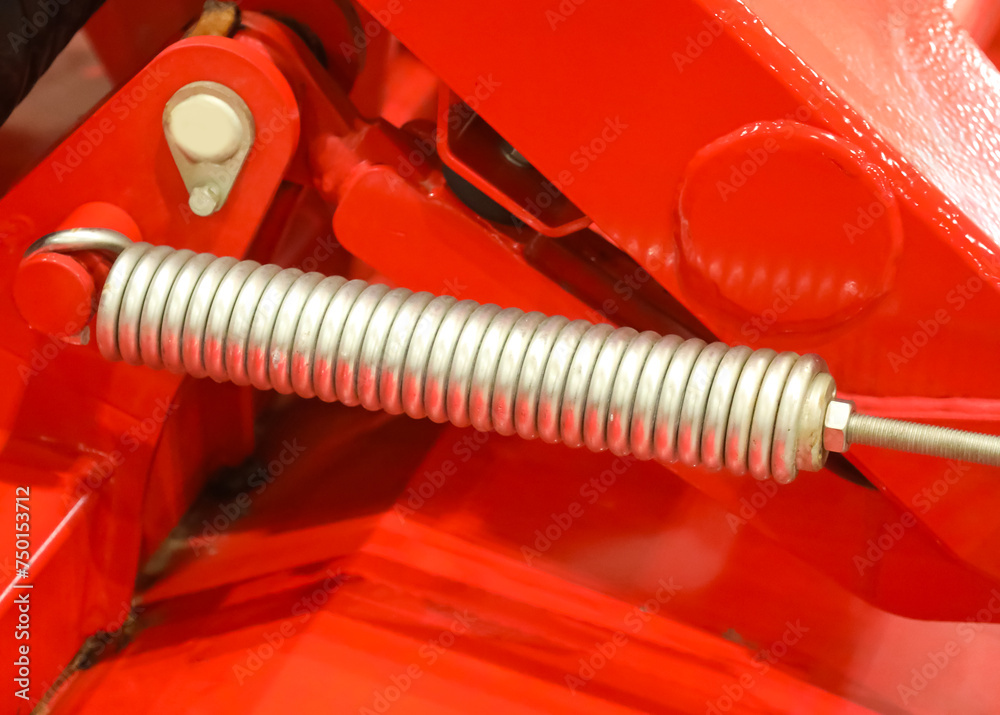 Unloaded steel spring ready for loading and tensioning in industrial ...