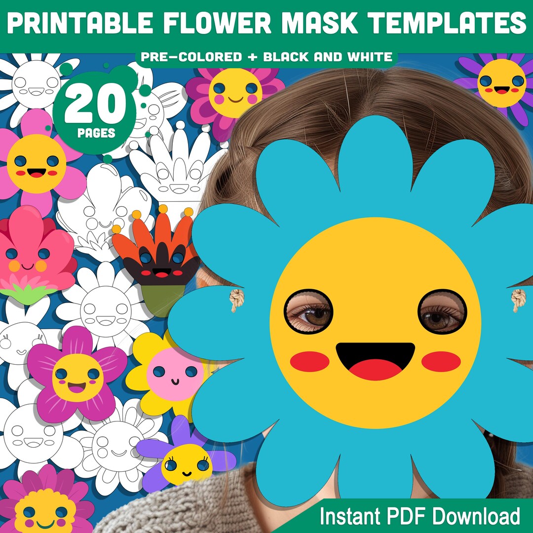 Printable Flower Mask Templates: 20-page Spring Craft for Kids, Pre ...