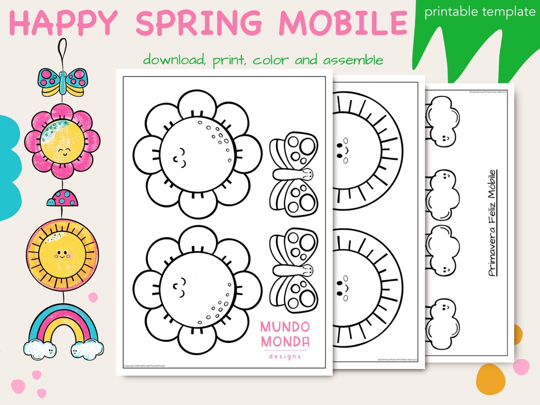 DIY Happy Spring Mobile / Digital Download Craft / Kids Craft Activity ...