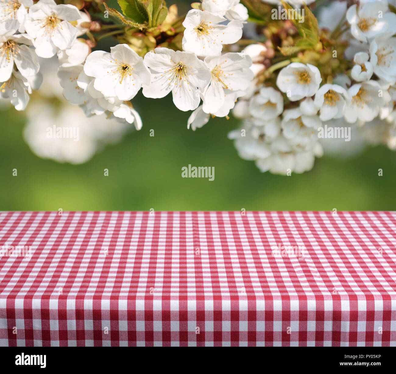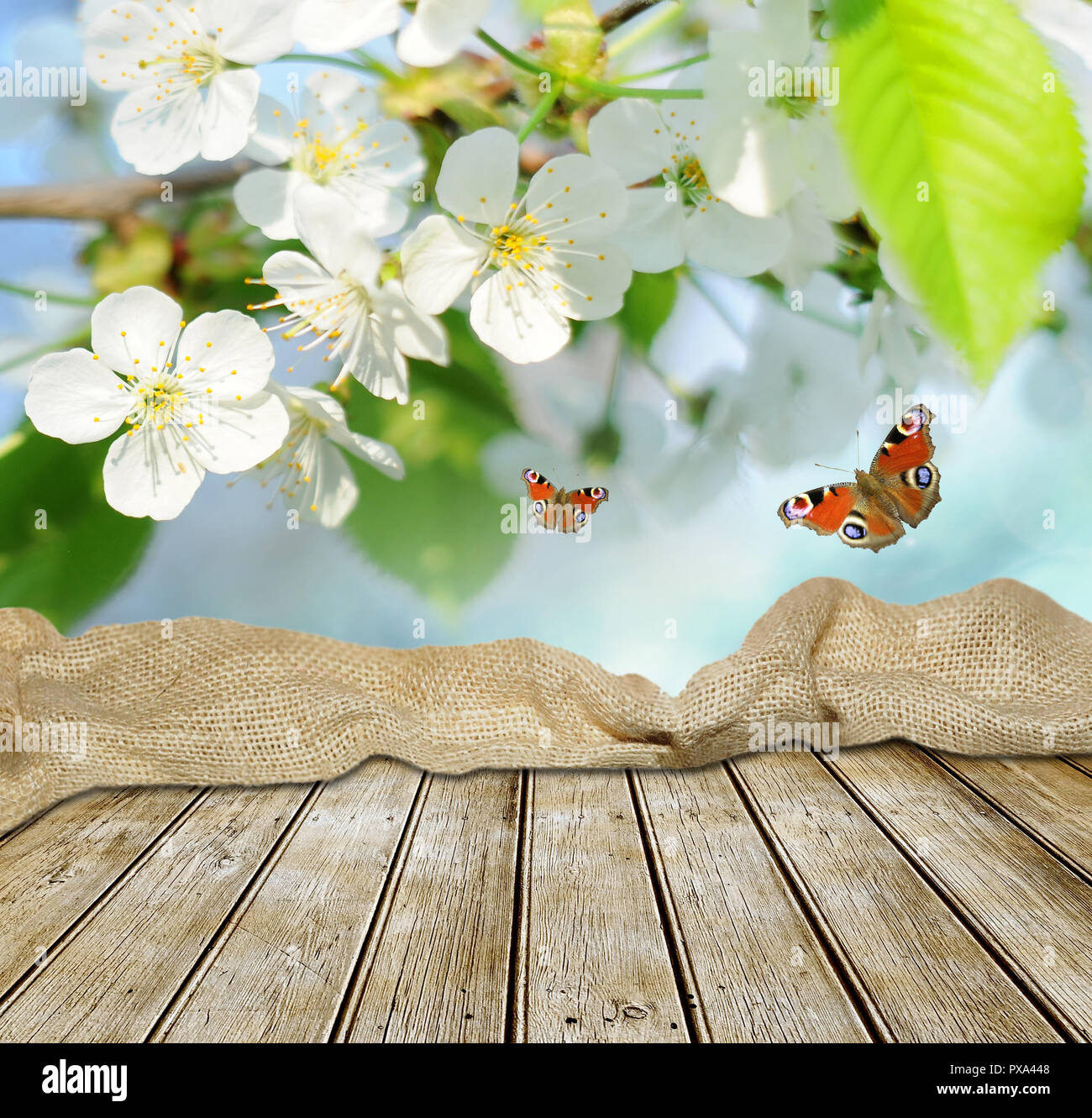 Empty table for product display montages - spring theme Stock Photo - Alamy