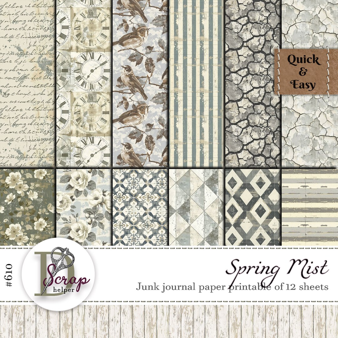 Spring Mist Collage Paper Printable 12 Sheets Masterboard Scrappy ...