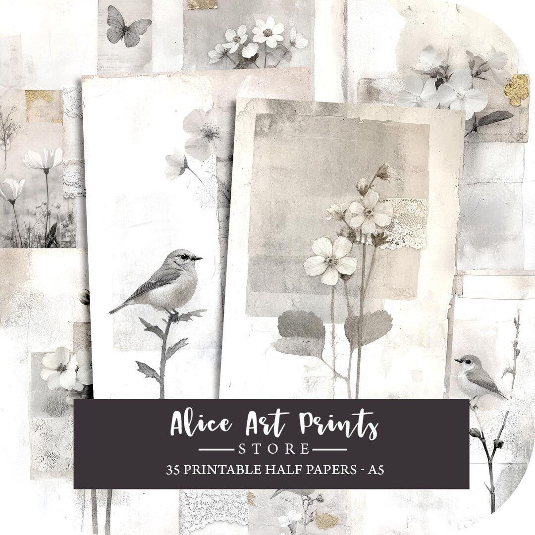 Spring Flower Art Collages Neutral Ephemera Junk Journal Half Paper ...