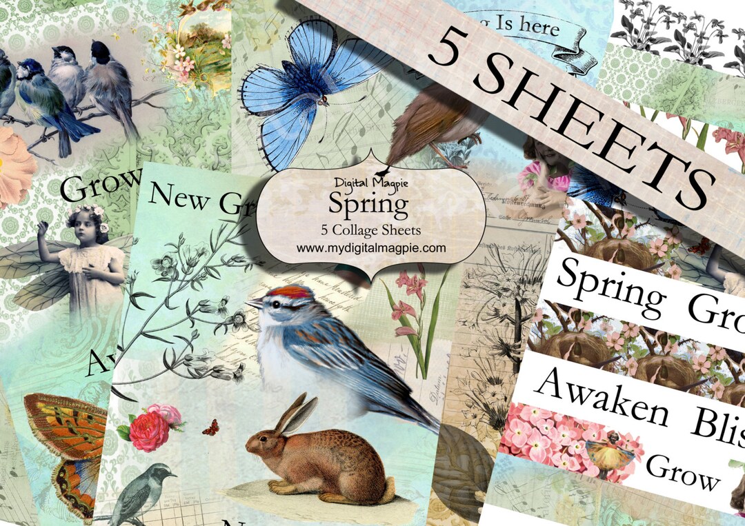5 Spring Digital Collage Sheets for Art Journals Scrapbooks - Etsy UK