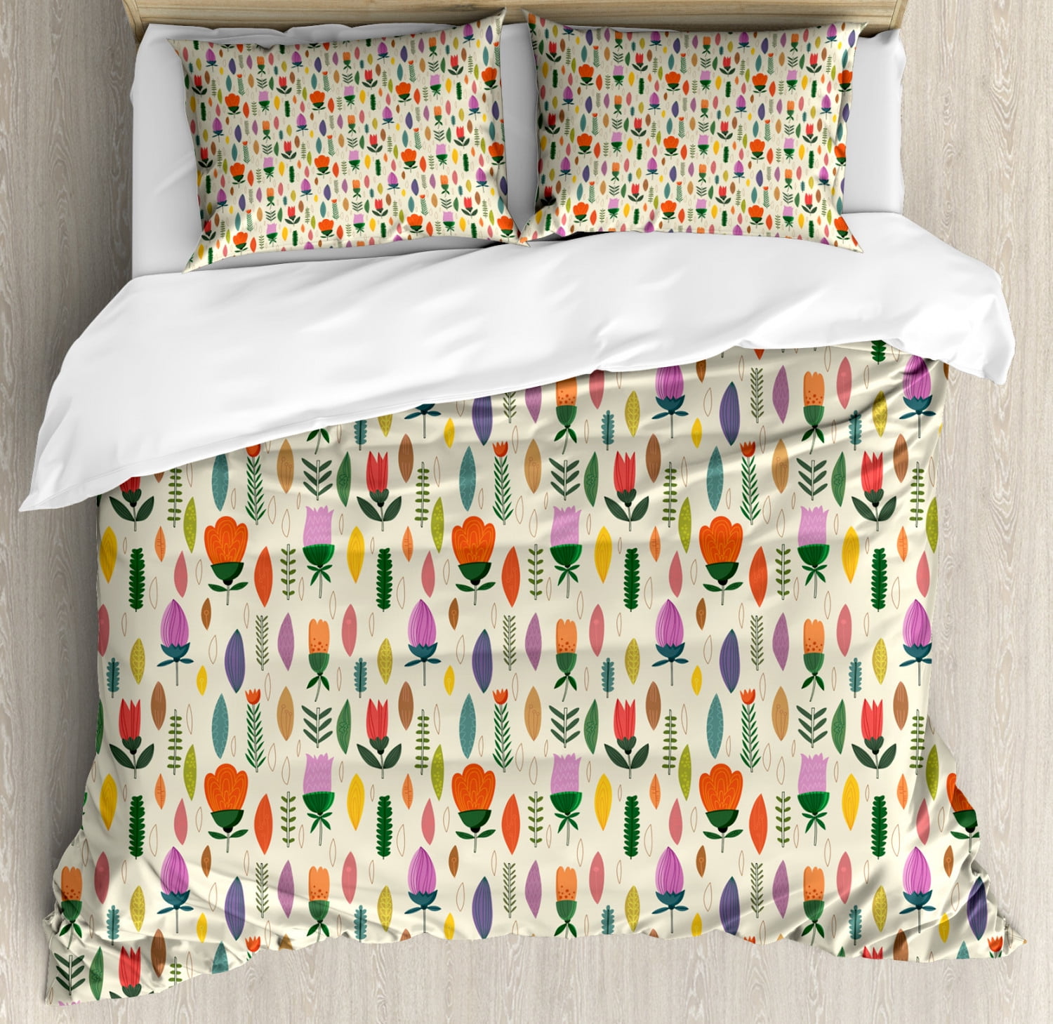 Spring King Size Duvet Cover Set, Seasonal Fun Pattern in Pastel Shades ...
