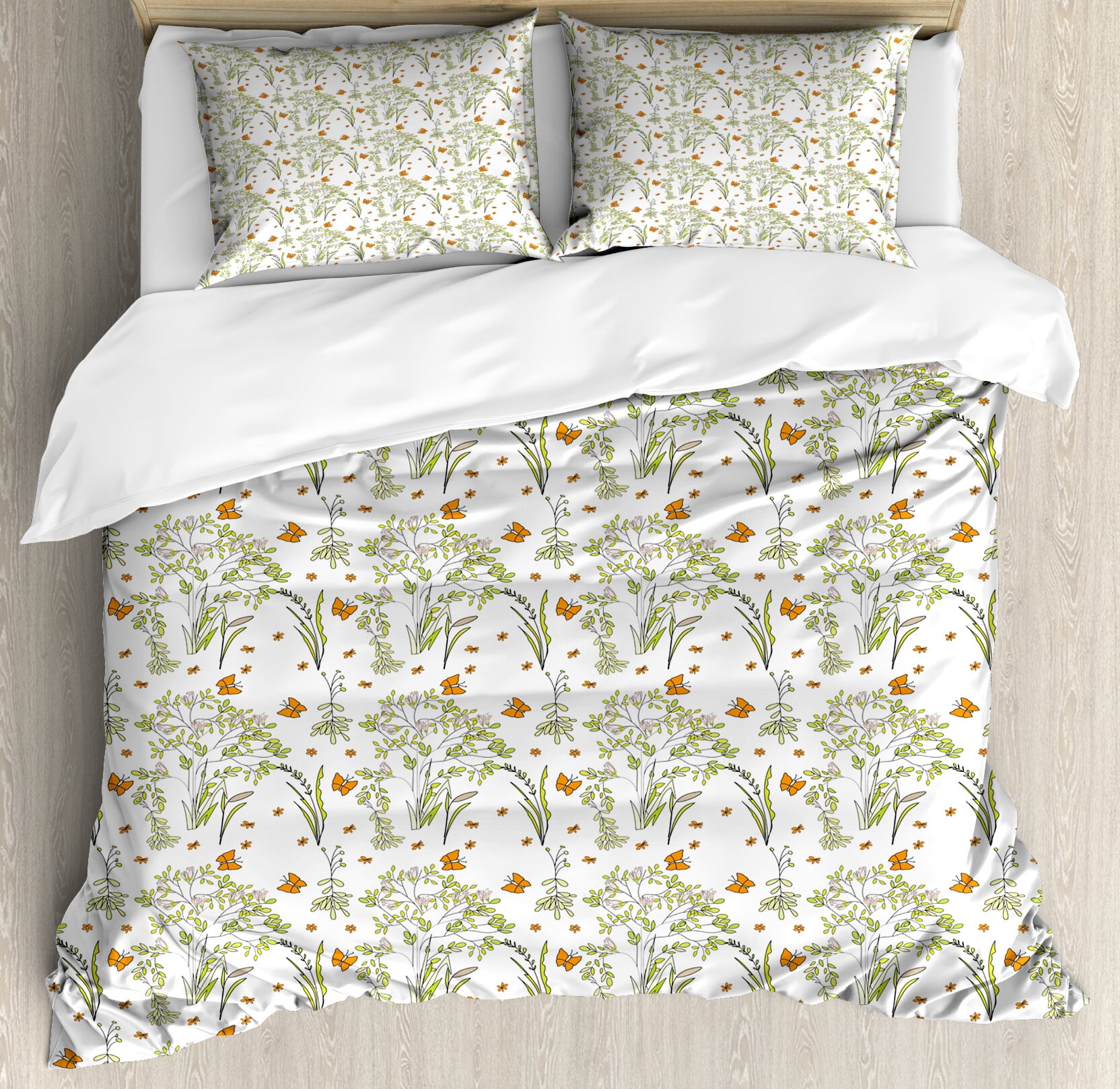 Spring Duvet Cover Set, Butterflies Flying Flower Field Shabby Seasonal ...