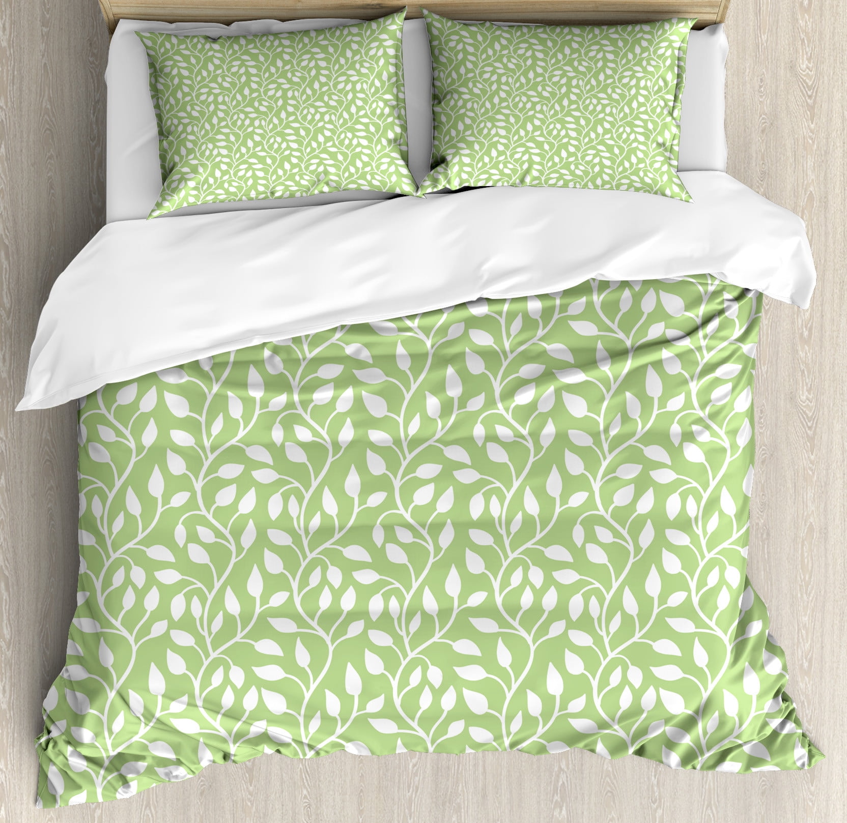 Spring Duvet Cover Set, Modern Design Leaf Pattern Illustration Park ...