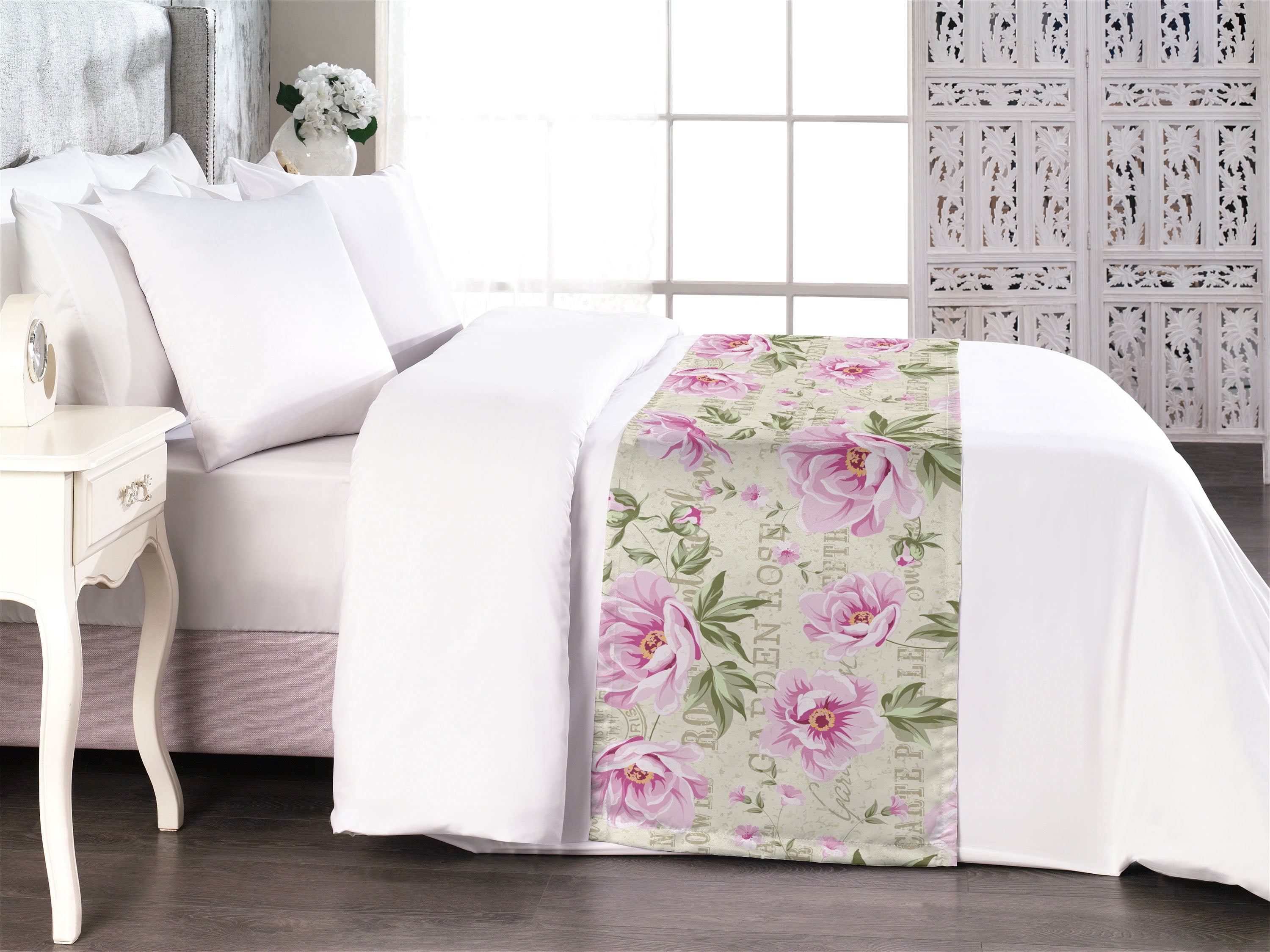 Spring Themed Bed Runner, Garden Rose and Flower Writings Garden Scene ...