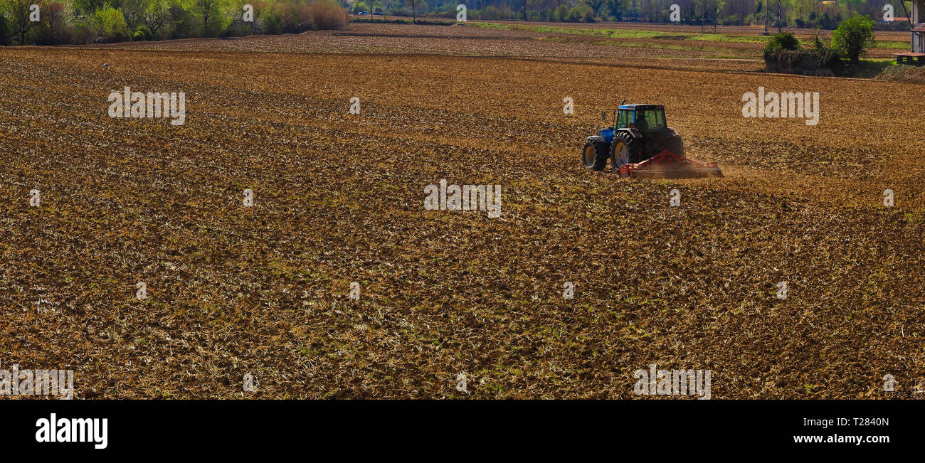 Premium Photo | A tractor plows a field during the spring sowing season ...