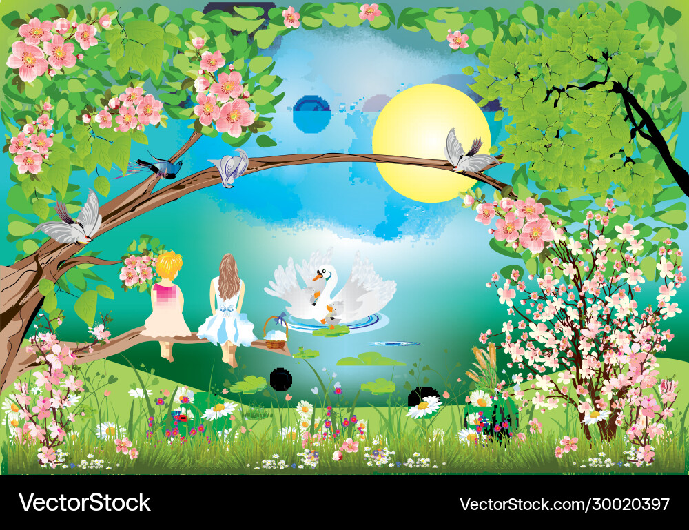 Drawing Spring Pond Background Design Backgrounds | PSD Free Download ...