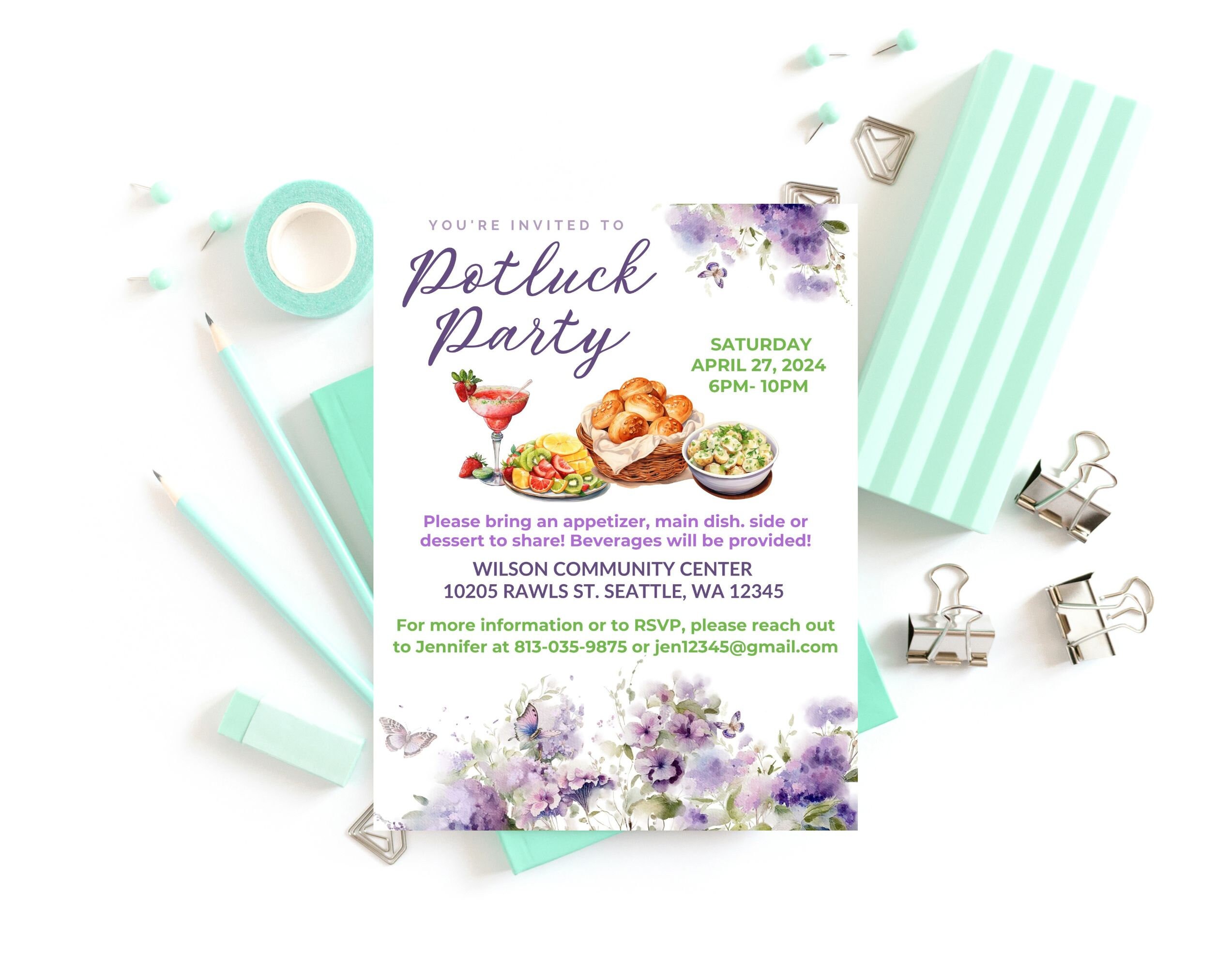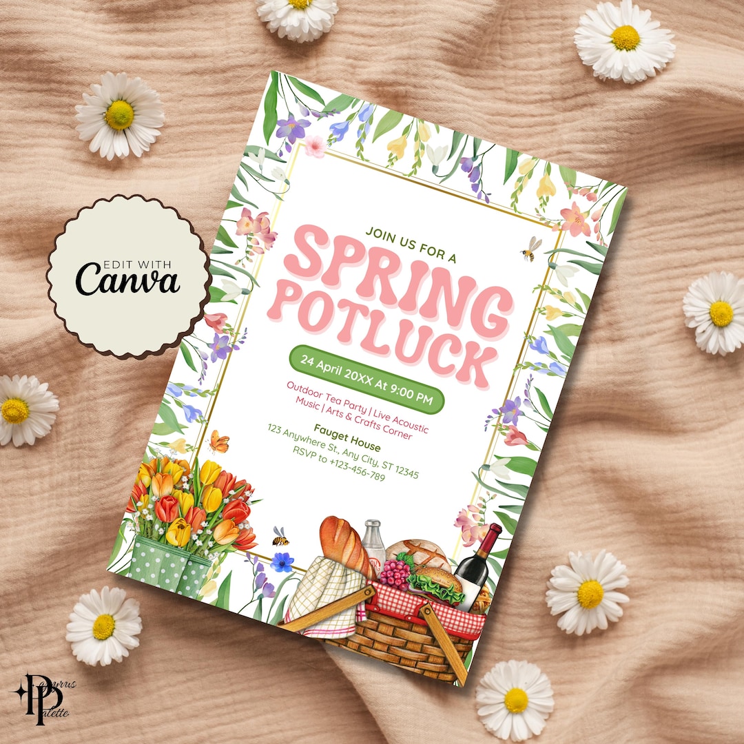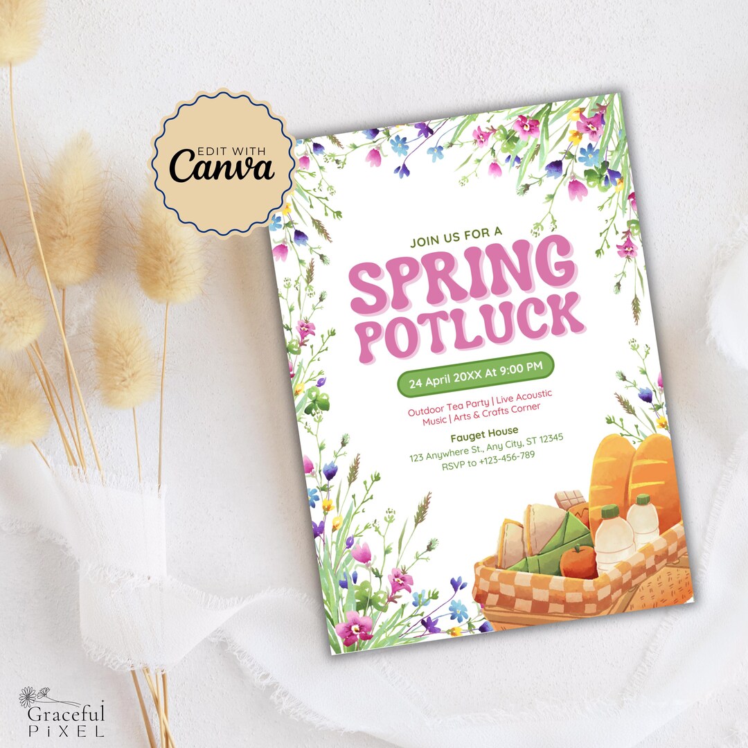 Editable Spring Potluck Invitation Template (PDF, JPEG, PNG) - Etsy