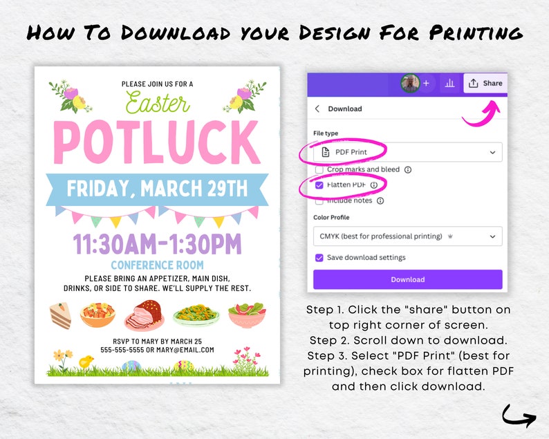 Editable Easter Potluck Invite, Spring Potluck Party Printable, Canva ...