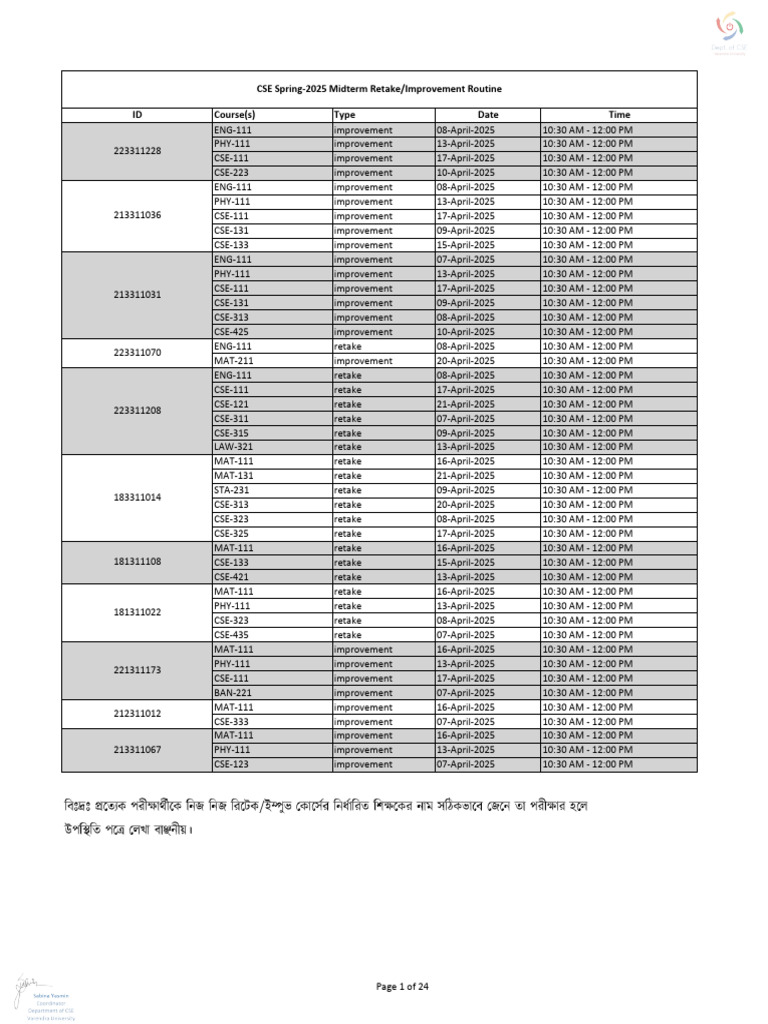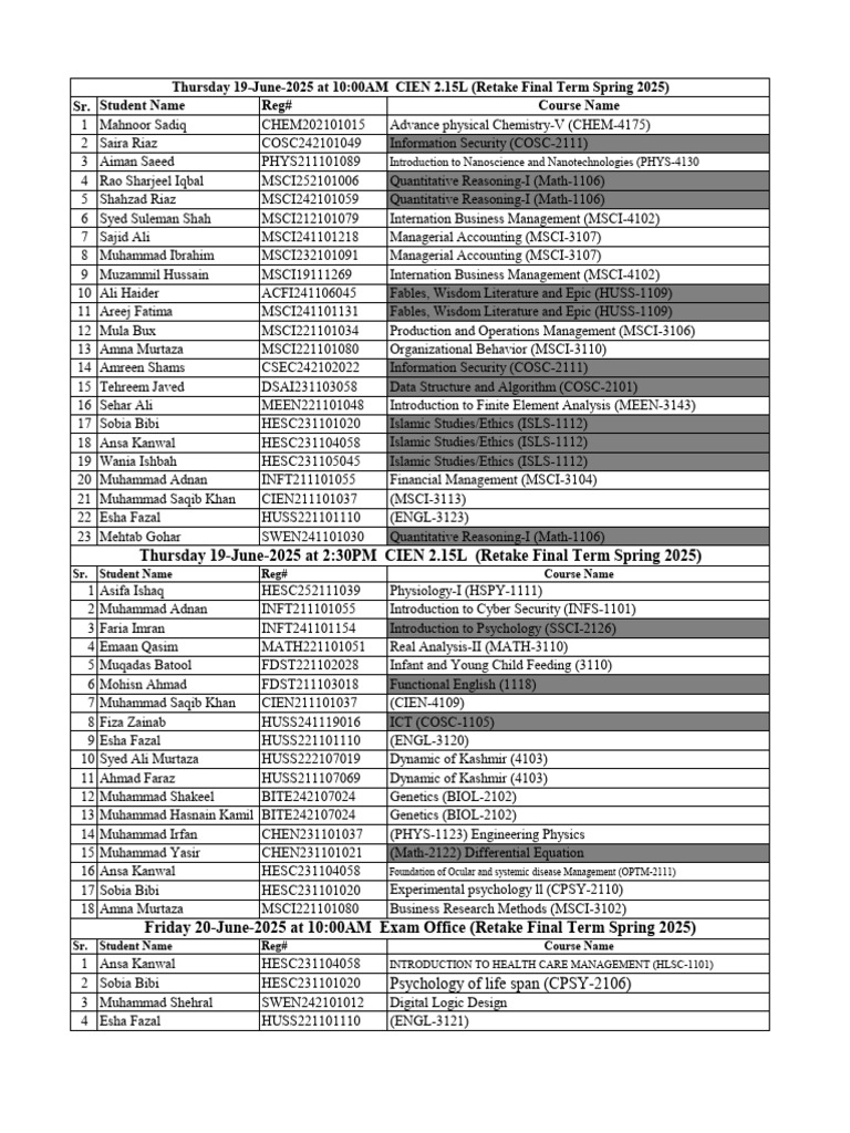 Date Sheet Retake Final Term Spring 2025 | PDF