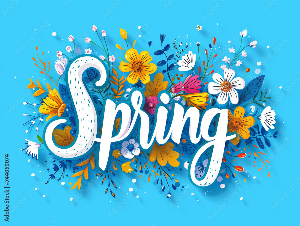 Illustration of a spring sign with flowers background Stock Vector ...
