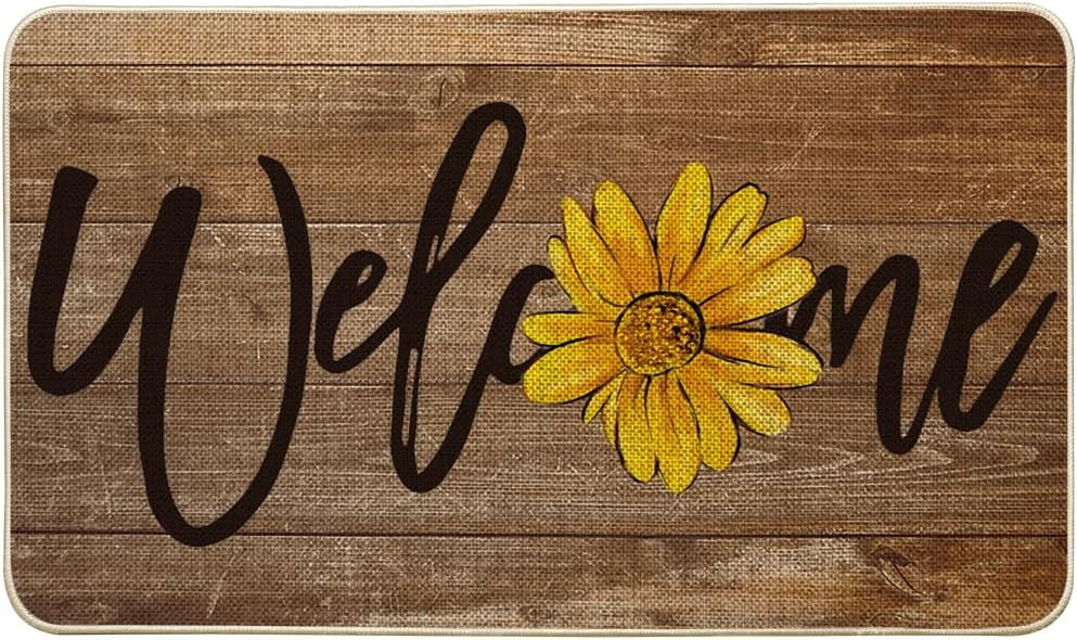 ANHXN Sunflower Welcome Spring Doormat, Home Summer Decor Low-Profile ...