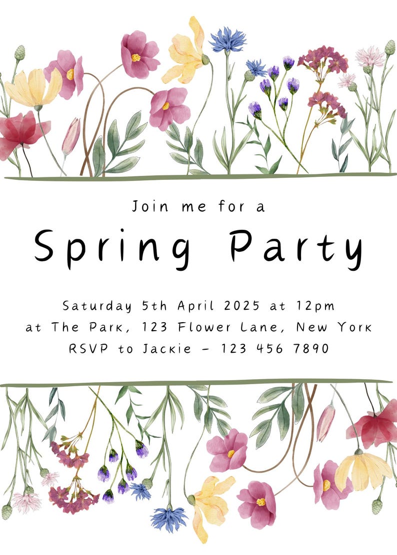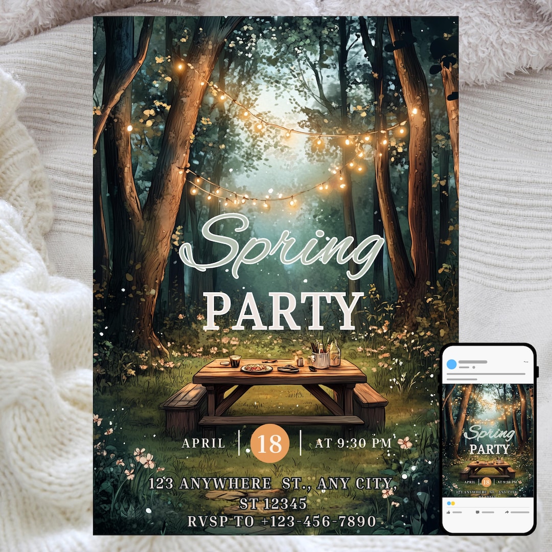 Spring Party Invitation, Editable Digital Template, Fresh and Festive ...