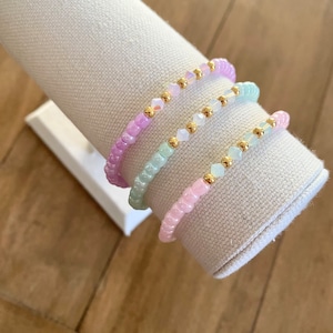 Beaded Stackable Stacked Stretch Bracelets in Spring Colors With Gold ...