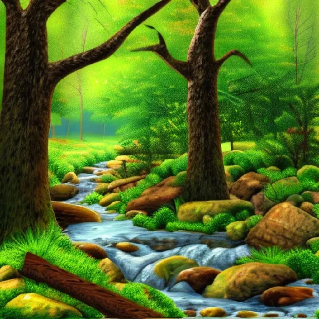 Trees and trails and stream spring landscape photo r... | OpenArt
