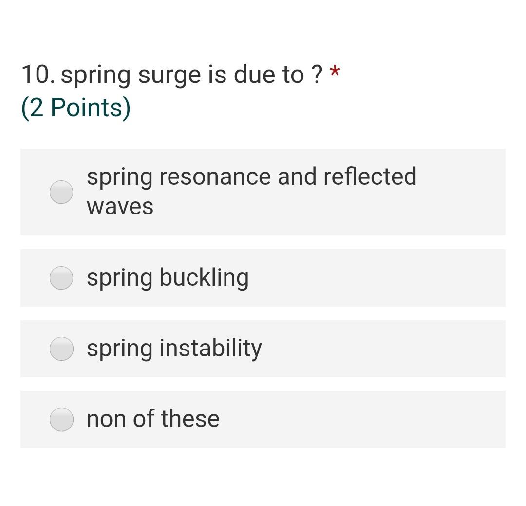 Solved 10. spring surge is due to ? * (2 Points) spring | Chegg.com