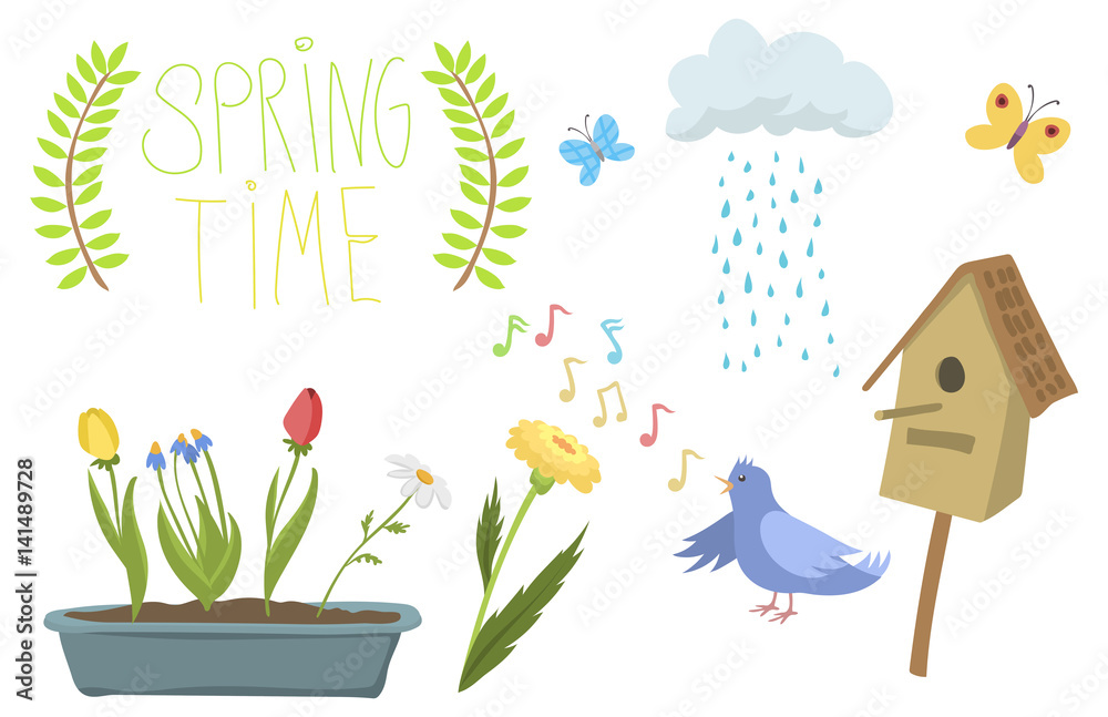 Set Various Spring Symbols Isolated On Stock Vector (Royalty Free ...