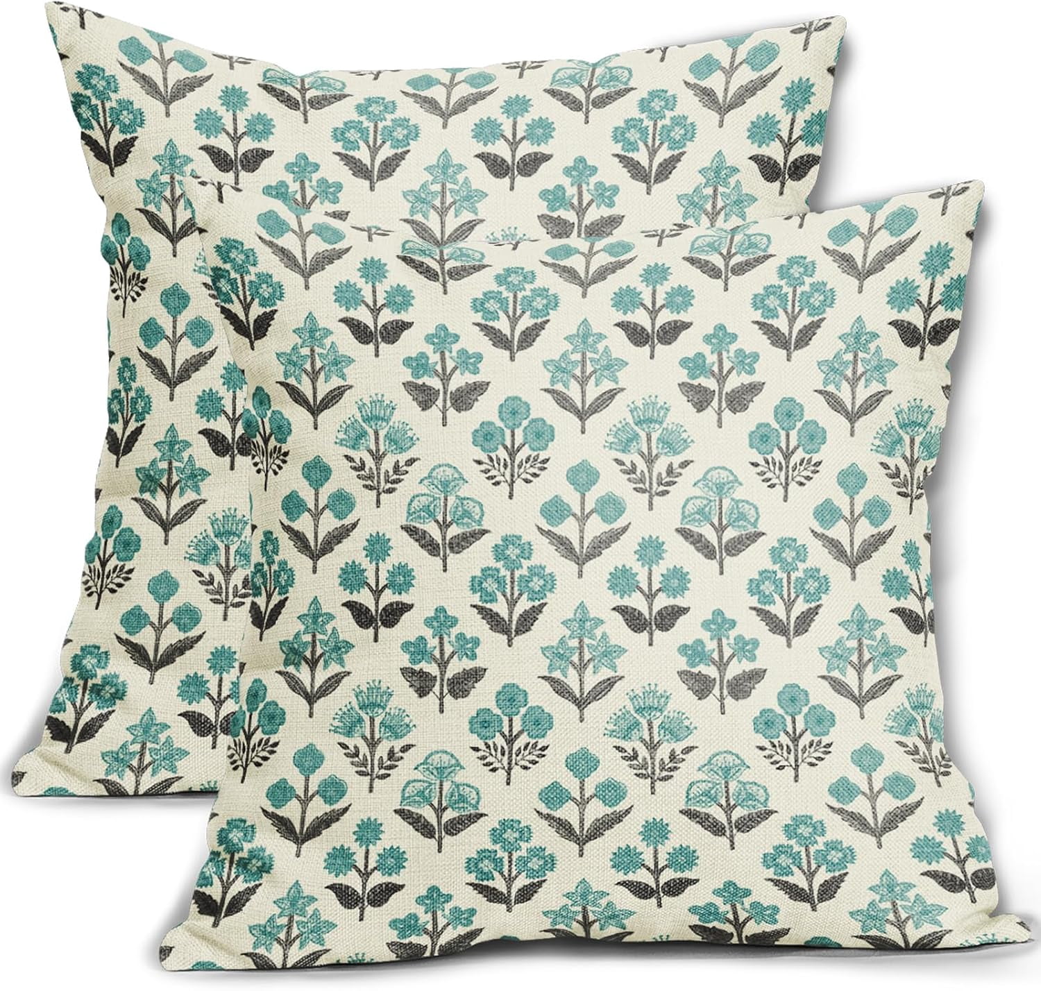 Black Teal Floral Pillow Covers 20x20 Inch Set of 2, Spring Summer ...