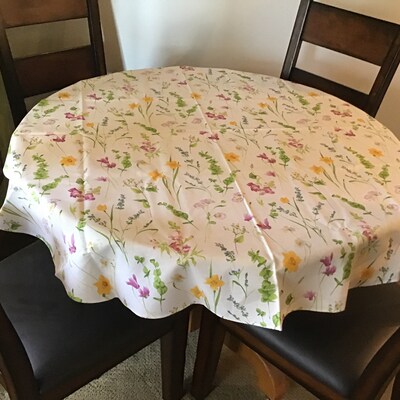 Round Spring Tablecloth, Spring Floral Print on White Background, Fresh ...