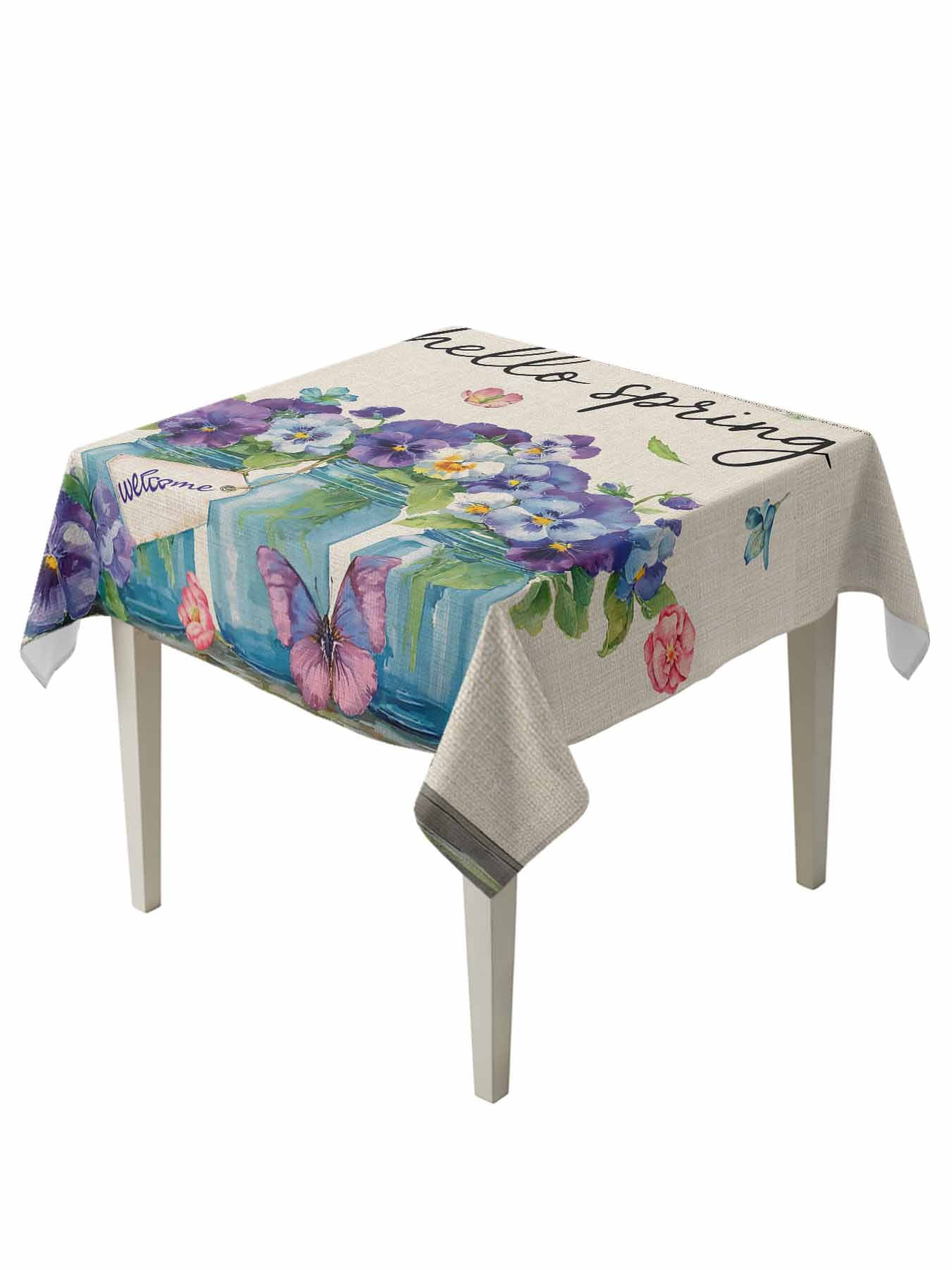 Hello Spring Square Tablecloth Country Purple Pansy Flowers Bouquet ...