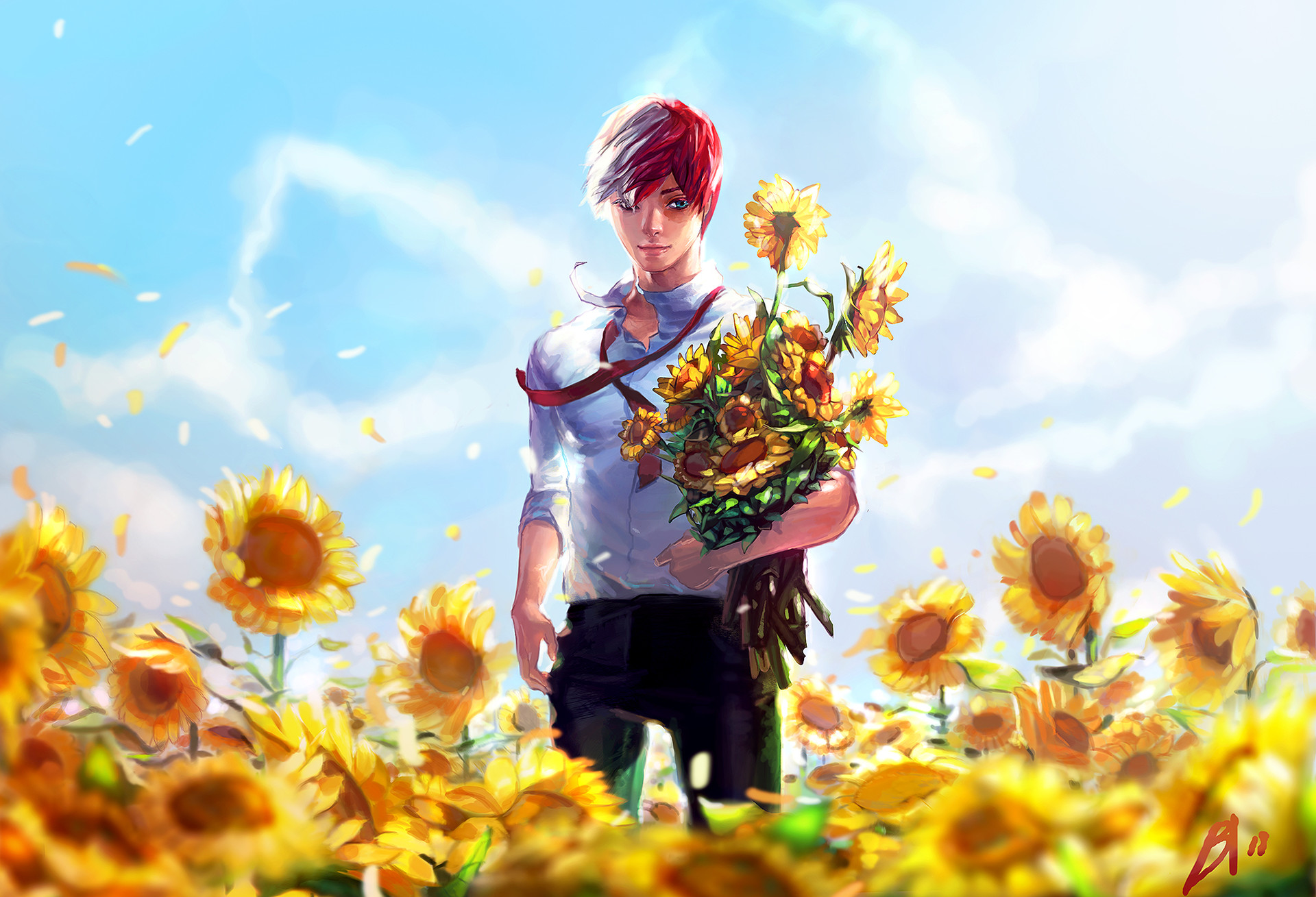 Download Cute Todoroki Sunflower Garden Wallpaper | Wallpapers.com