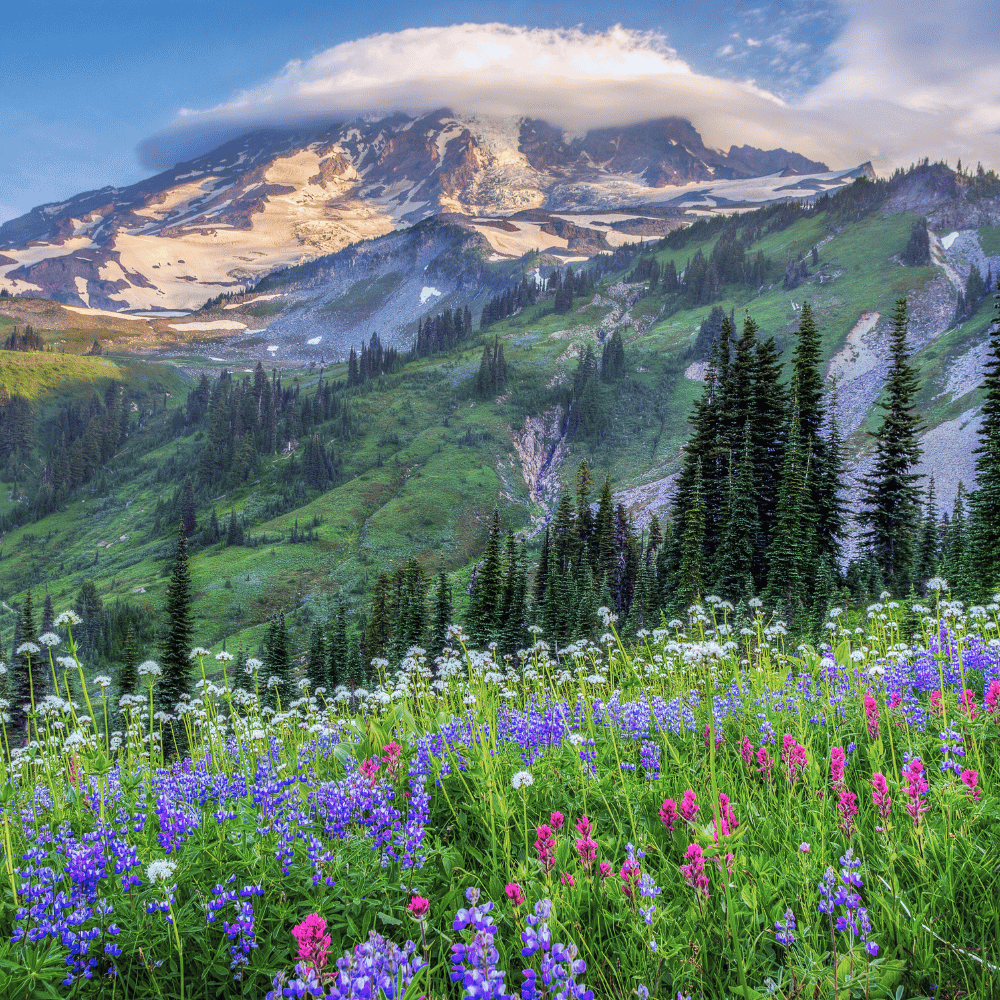 Spring flowers on Mt. Rainier | Natural landmarks, Rainier, Washington ...