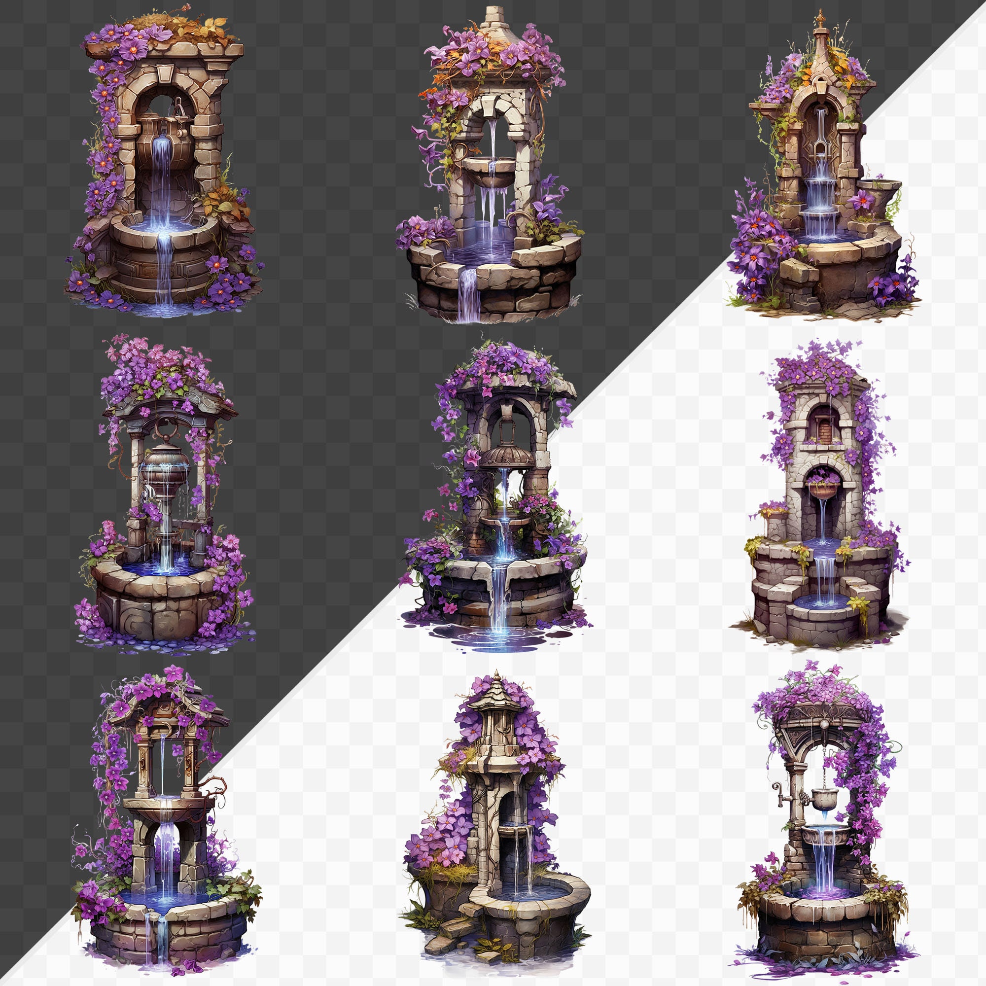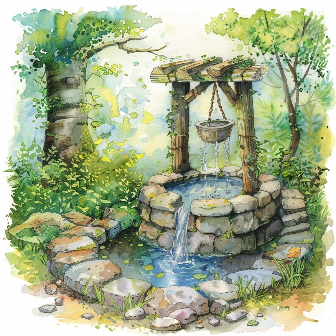 PNG Watercolor Spring Well Clipart Bundle Magical Wells PNG Cute ...