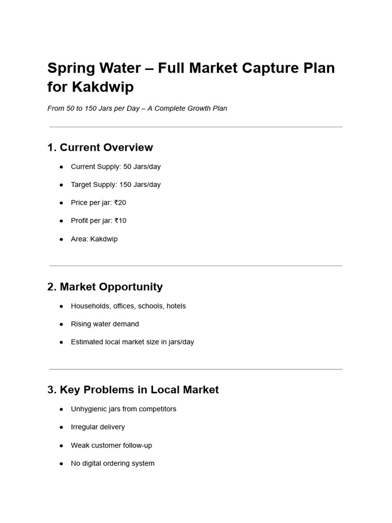 Spring Water - Full Market Capture Plan For Kakdwip | PDF