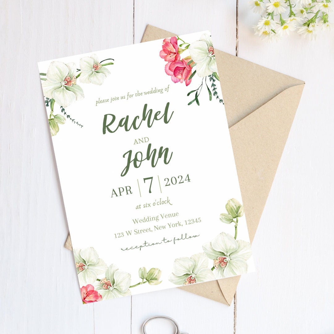 Spring Floral Wedding Invitation, Flat Wedding Invitation, Orchids ...