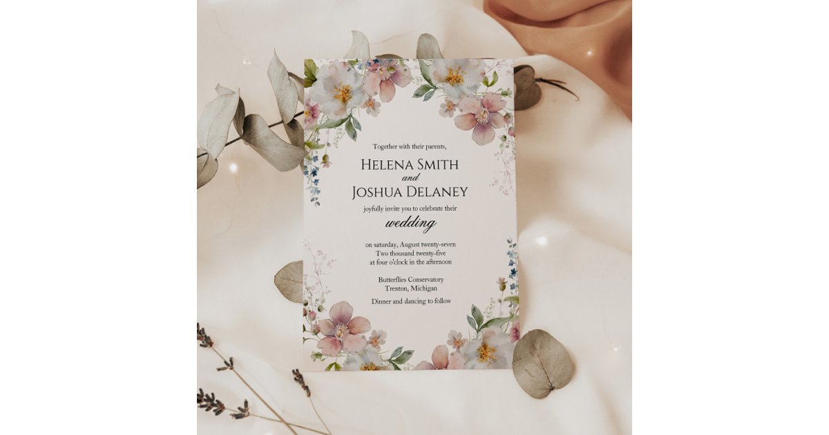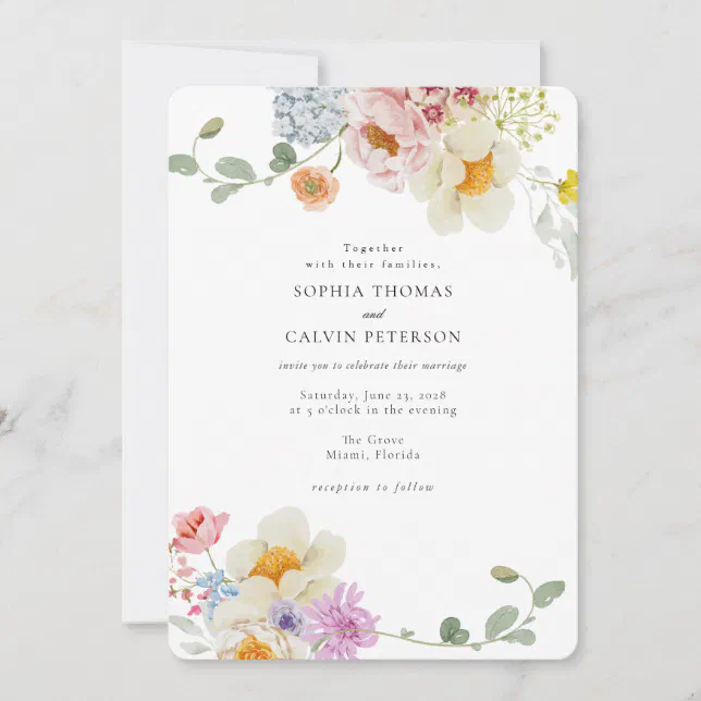 Modern Elegant Wildflower Spring Summer Wedding Invitation | Zazzle