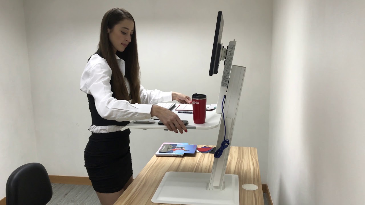 Integrated sit stand workstation with pneumatic spring - YouTube