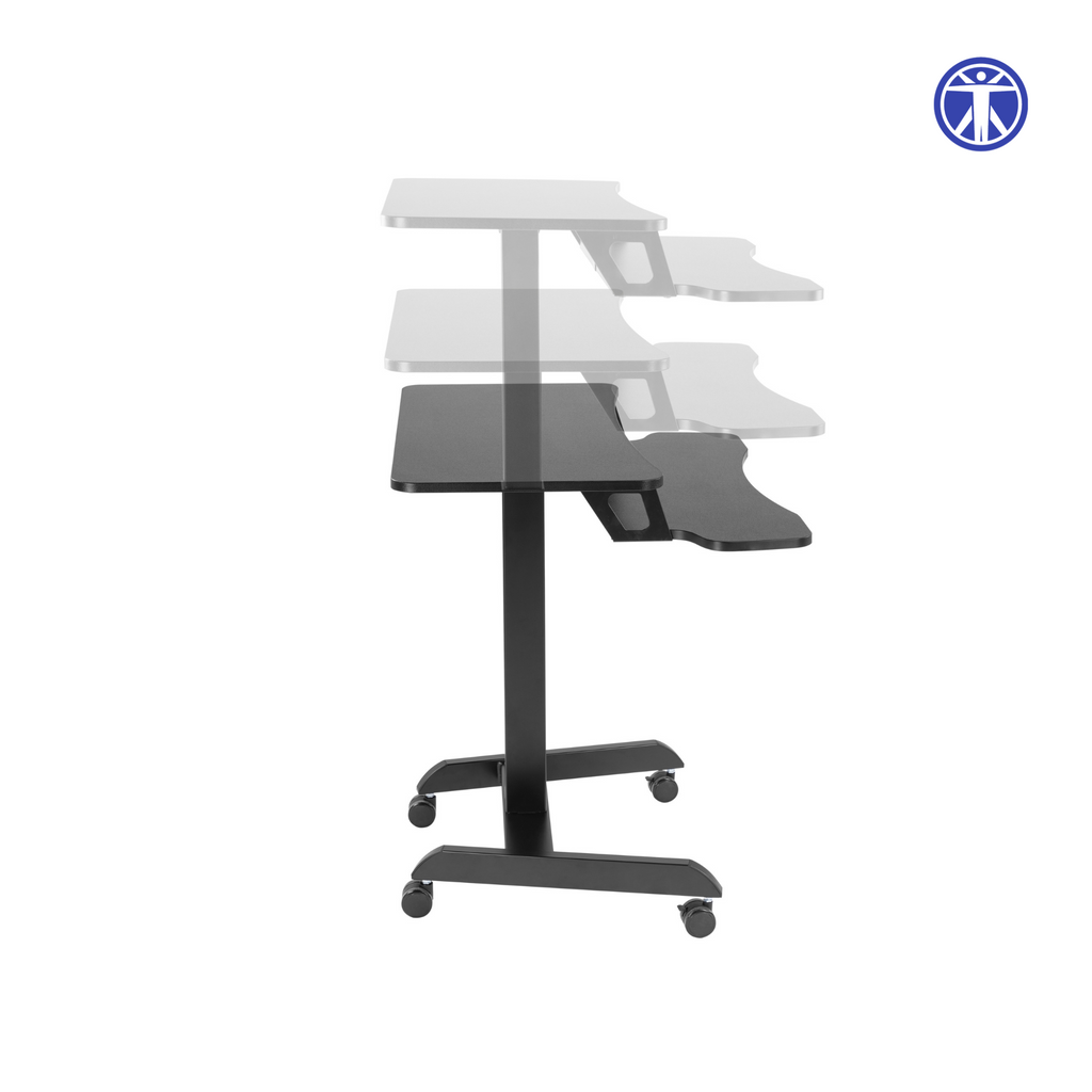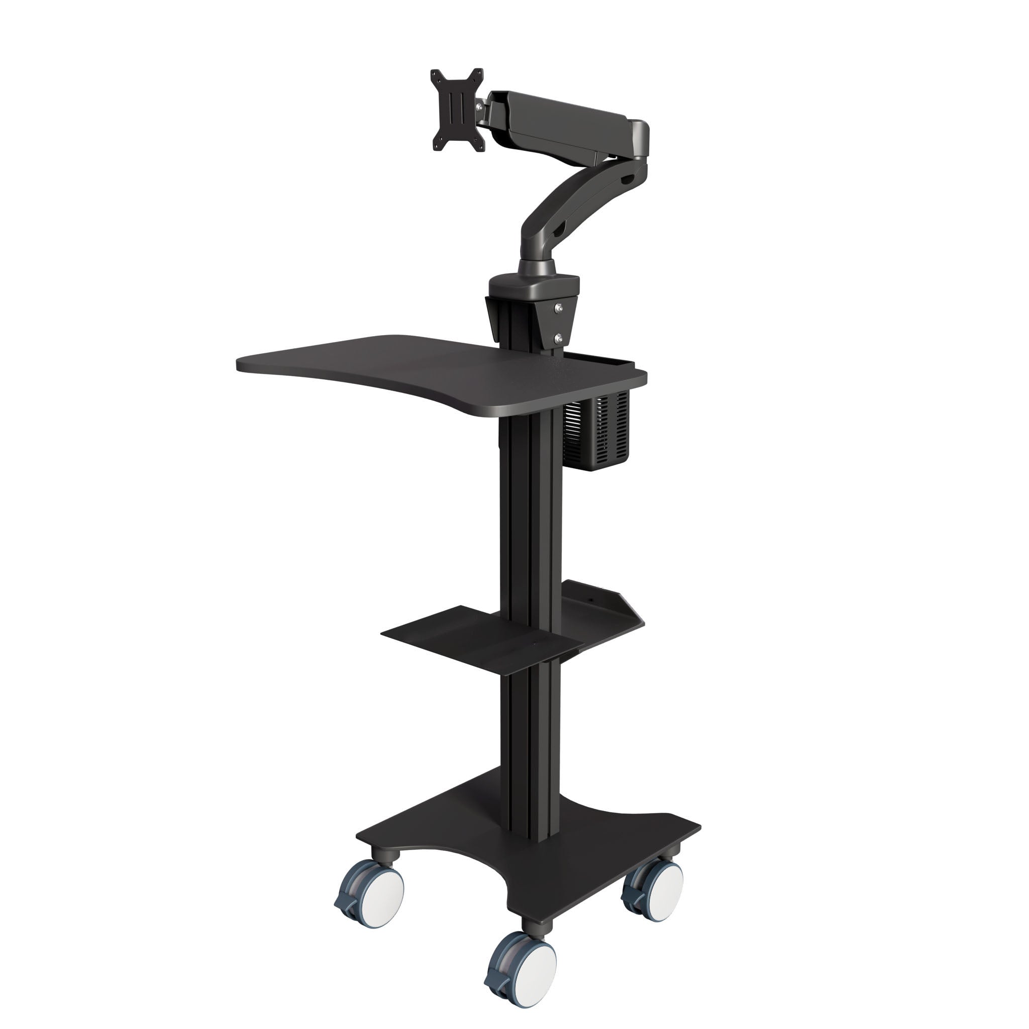ProperAV Two Tier Mobile Desk Trolley Workstation with Gas Spring Heig ...