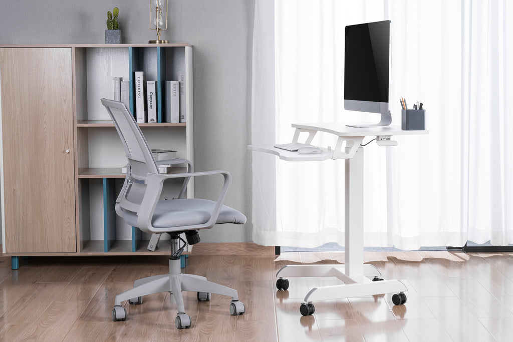 Sit Stand Mobile Workstation with Gas Spring Arm and Keyboard Tray, Op ...