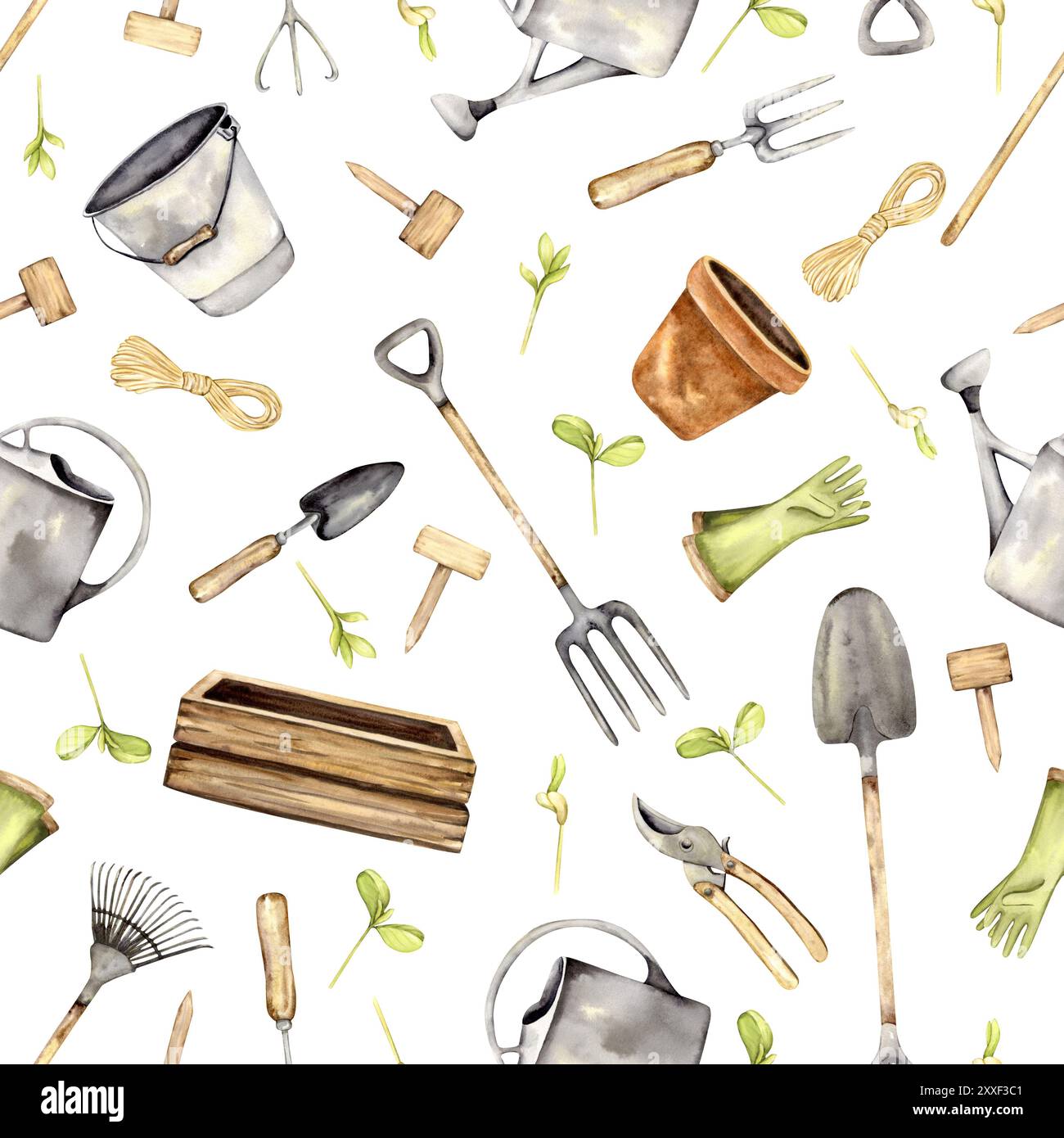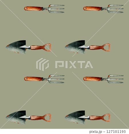 Garden tools pattern for spring wrapping paper...のイラスト素材 [127101193 ...