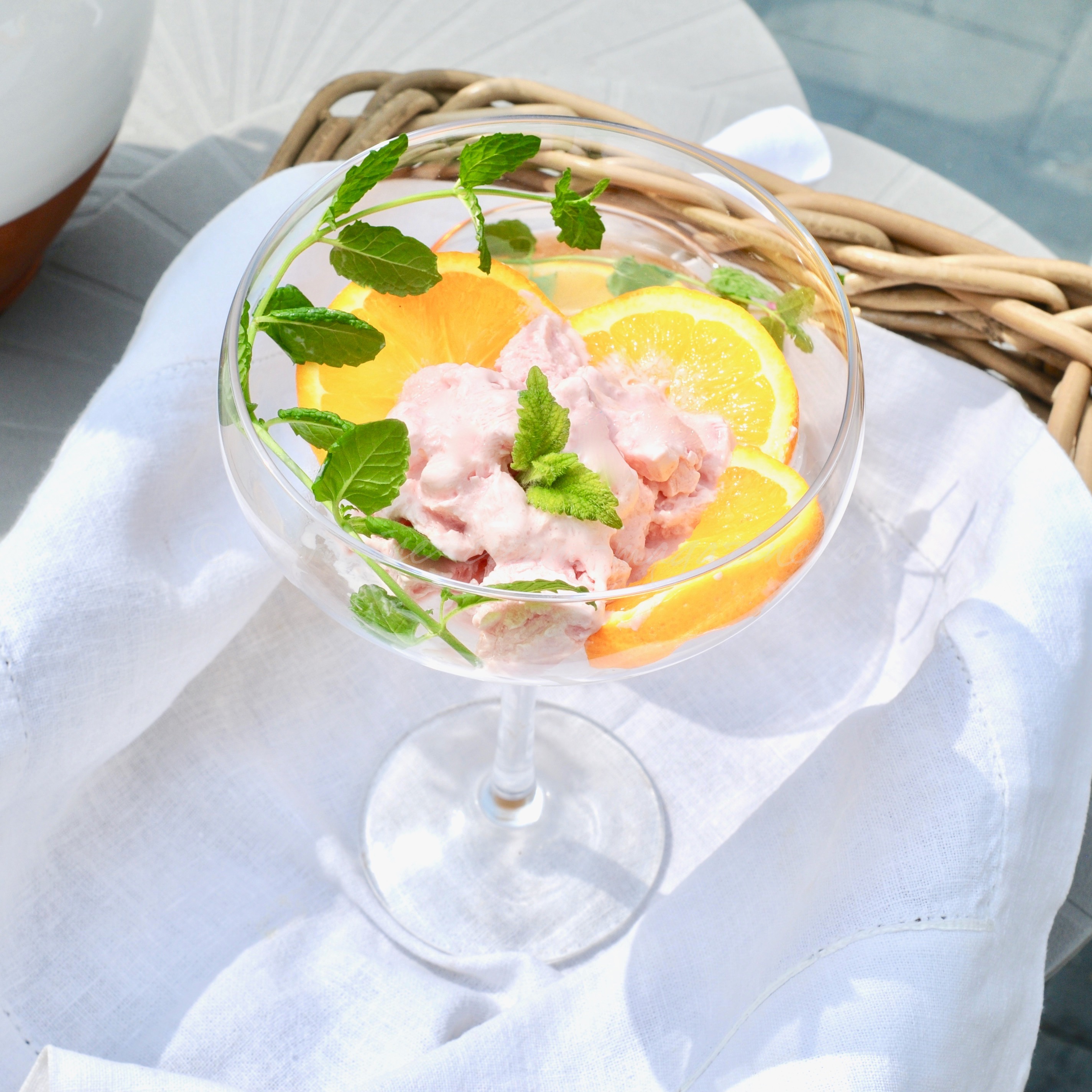 Fragrant frozen yoghurt of blood orange with a waft of spring ...