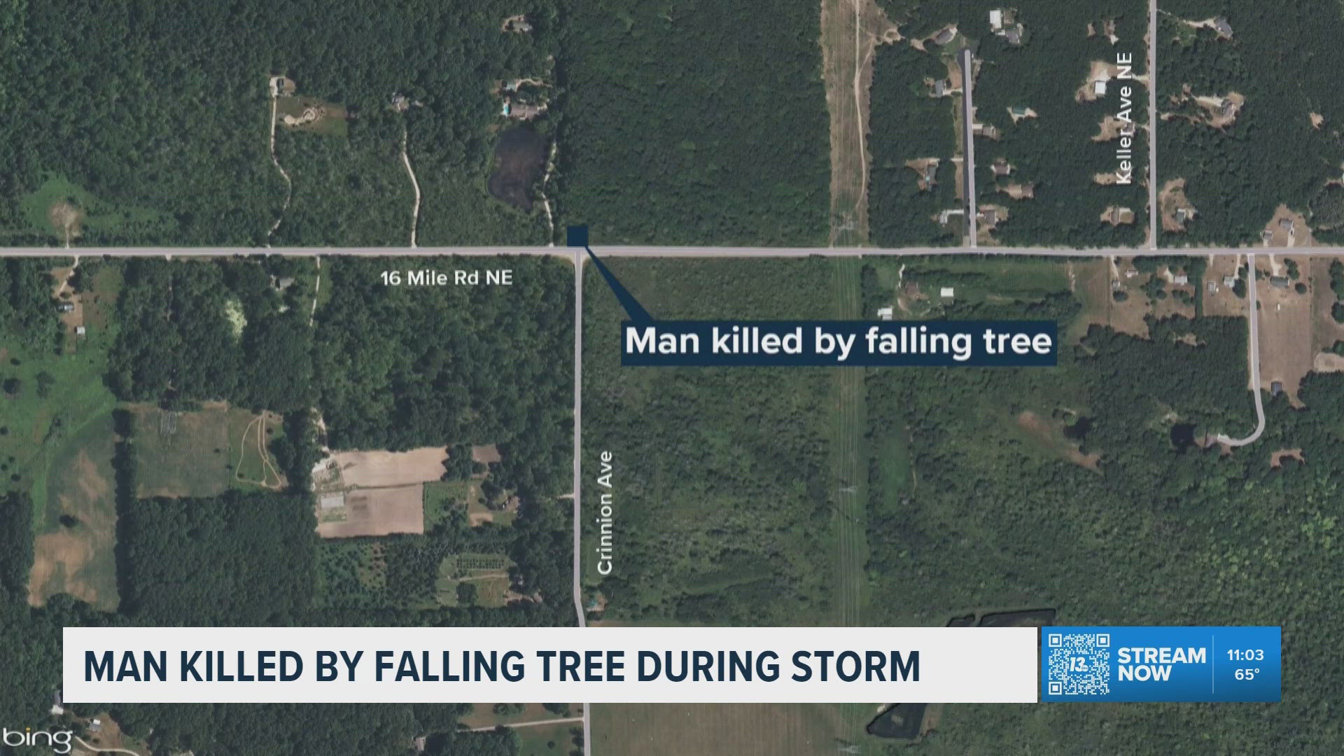 Man killed by fallen tree near Cedar Springs amid strong winds | wzzm13.com