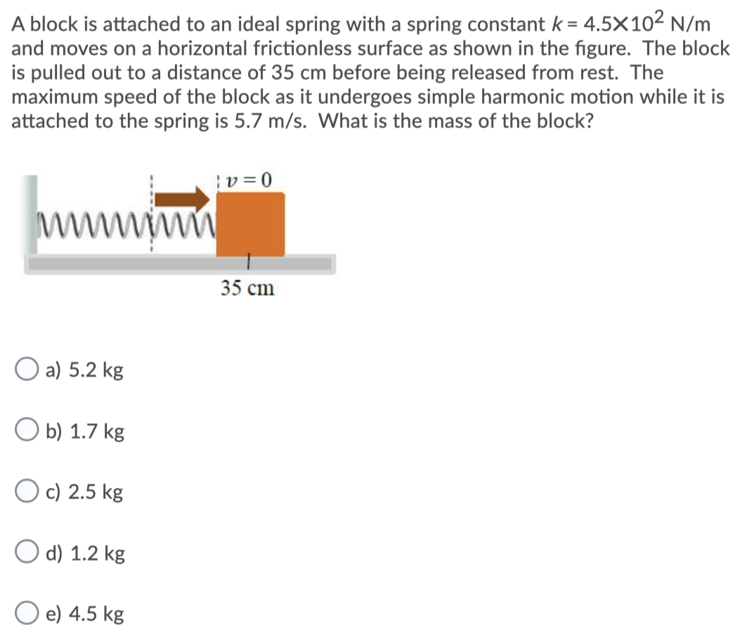 A block of mass m = 4.5 kg is attached to a spring with spring constant ...