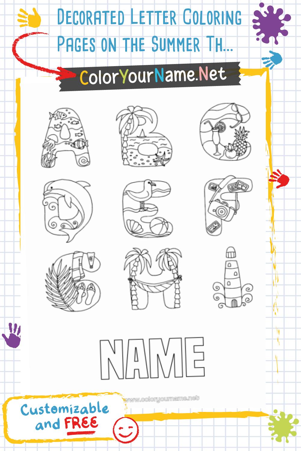 Decorated Letter Coloring Pages on the Summer Theme – A to I